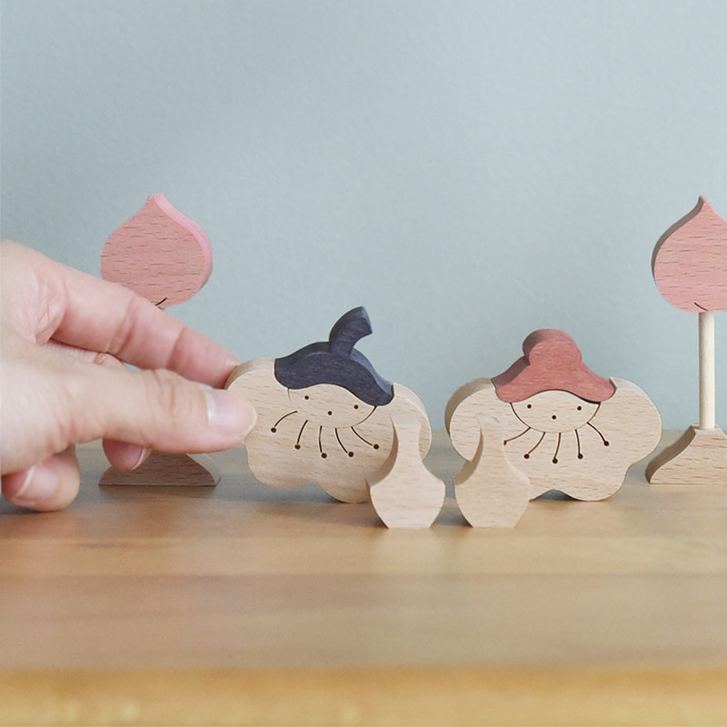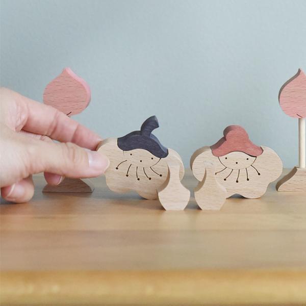 お子さまと「ここに置いてみる?」などと話しながら、自由な飾り付けを楽しめるのも、この組み木の魅力。