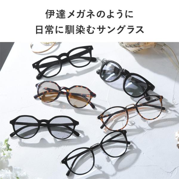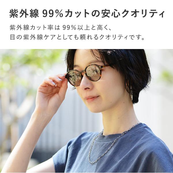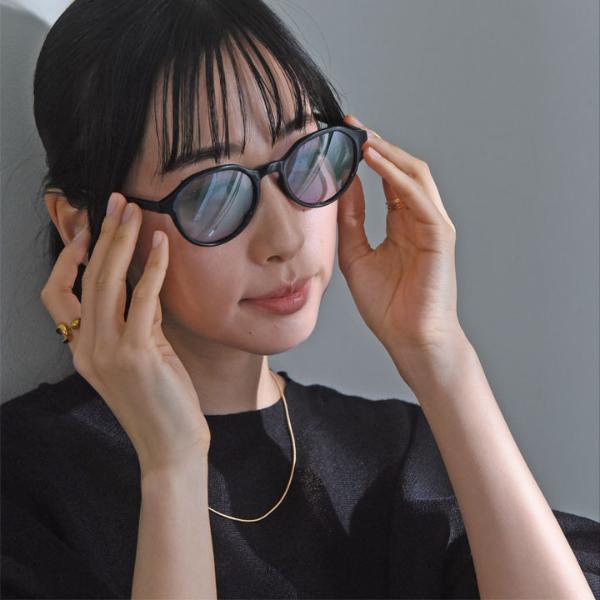 - 伊達メガネのような感覚でつけられる、UVカット99%のサングラス。顔なじみがいいデザインでありながら紫外線対策もばっちり。室内でかけっぱなしでも違和感ありません。
