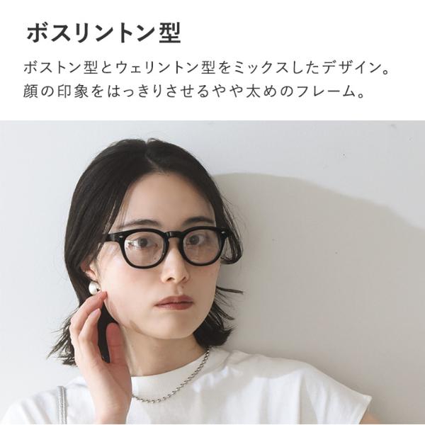 ボスリントン型ボストン型とウェリントン型をミックスしたデザイン。ボストン型よりも四角に近い形ですが、こちらも柔らかな印象を演出してくれます。顔の印象をはっきりさせてくれるやや太めのフレーム。