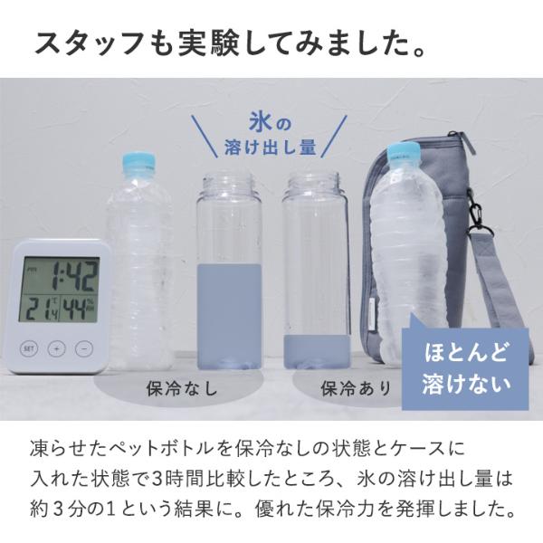 ペットボトルをすっぽり入れて持ち歩ける、冷たさ長持ち強保冷のペットボトルケース。内側はマイクロファイバー生地で結露も気になりません。軽量素材で持ち歩きもノンストレス。