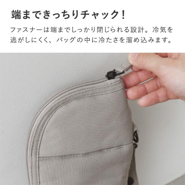 ファスナーは端までしっかり閉じられる設計。冷気を逃がしにくく、バッグの中に冷たさを溜め込みます。