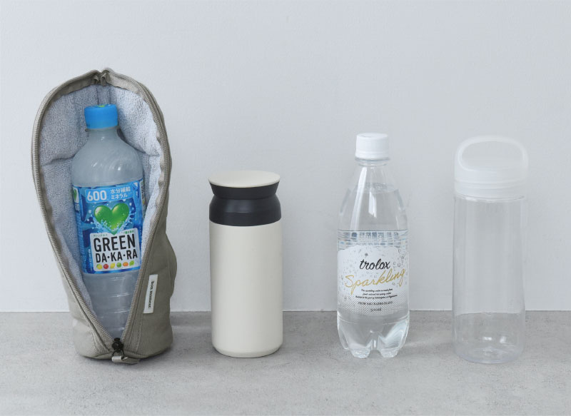 コンビニや自販機で購入した飲み物はもちろん、家で凍らせたスポーツドリンクの持ち歩きも◎。ペットボトルだけでなく、シンプルな形の水筒も収納できます。