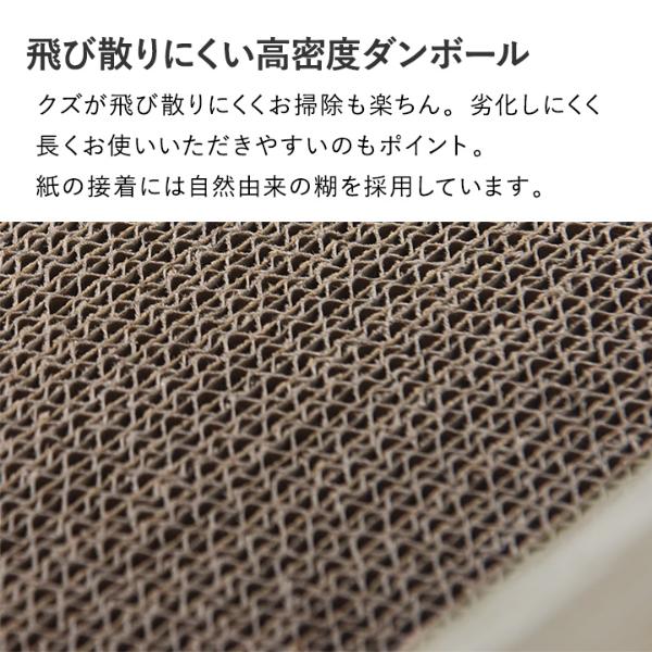 クズが飛び散りにくい高密度のダンボールで、お掃除も楽ちん。劣化しにくく長くお使いいただきやすいのもポイント。