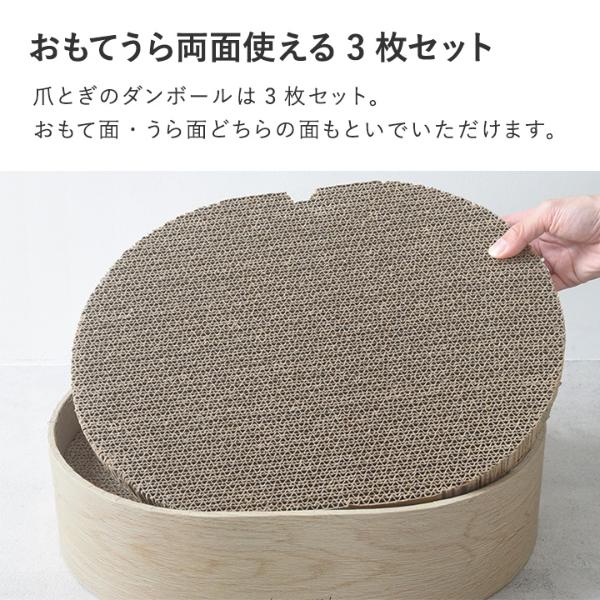見えるところに置いておきやすい木目調デザインで、ガシガシとぎ放題!?の3枚セット。ひっくり返してうら側もお使いいただけます。さらに自然由来の糊を採用した、猫にやさしいひと品です。