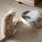 段ボールの枠に爪とぎをセットしているので、研ぎカスが床に落ちにくく、お掃除も楽々です。