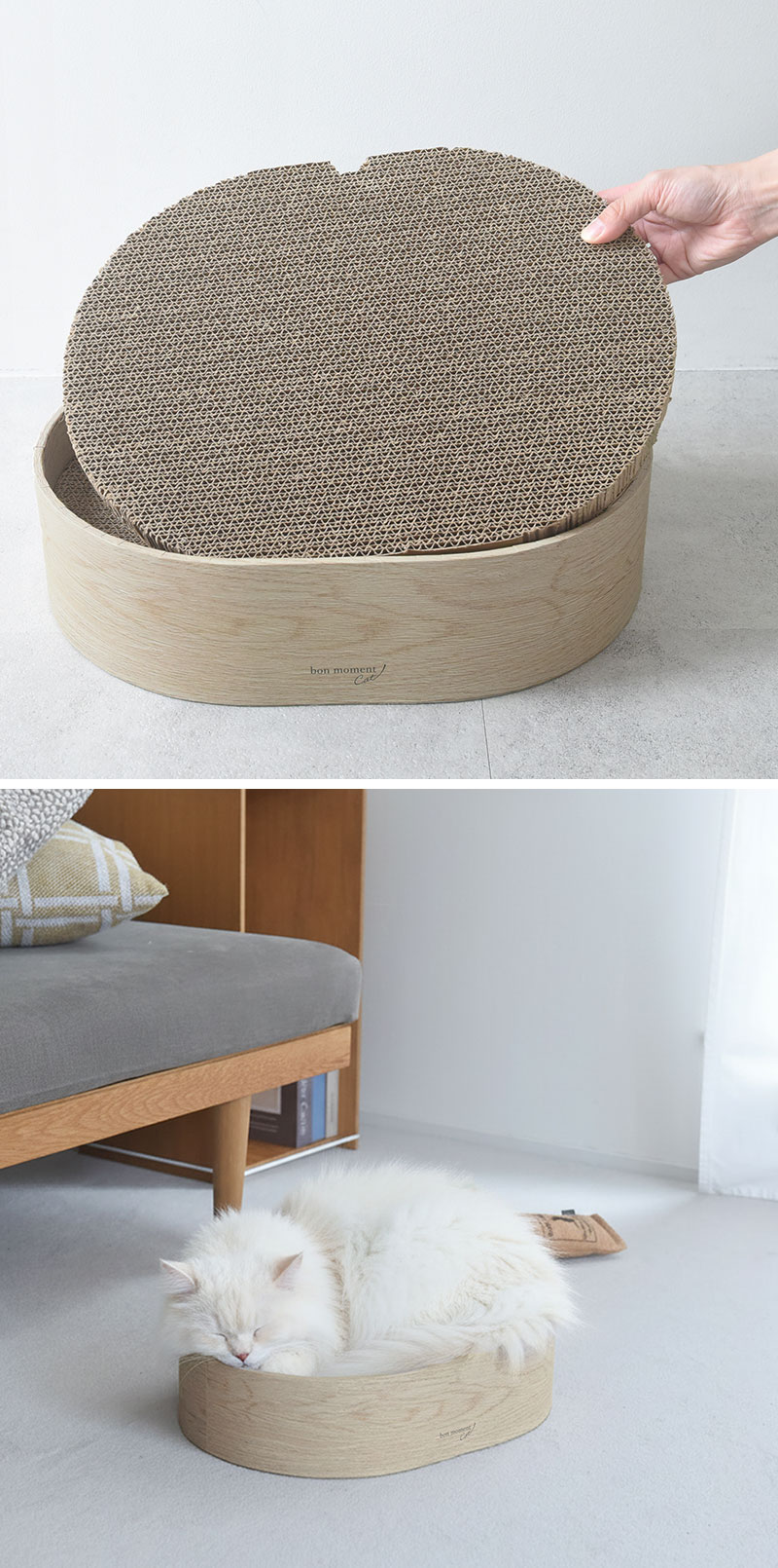 インテリア雑貨(angers home)>>ペット>>】bon moment cat リビングに馴染む 木目調のオーバル爪とぎ 3枚セット/ボンモマンキャット【送料無料】