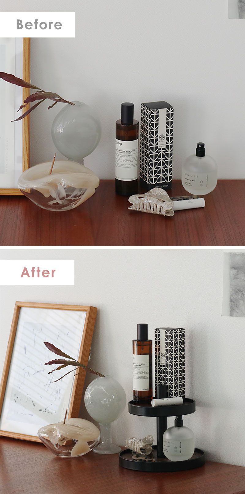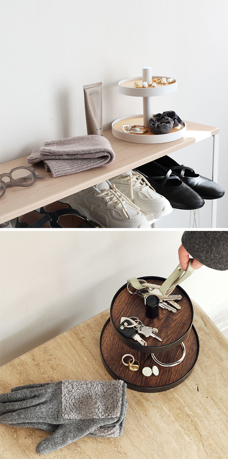 - アクセサリーや眼鏡、鍵、コスメなどの新たな定位置に◎。飾るように収納できる、オルドルの2段ツリーです。散らかりがちな小物類をここにまとめればスッキリ片付きます。