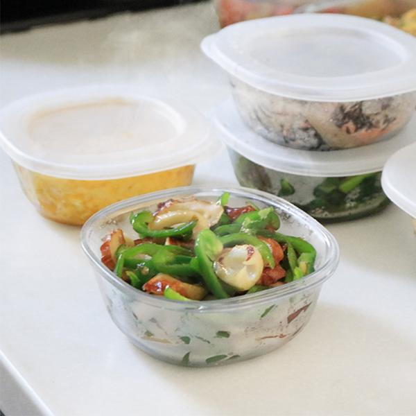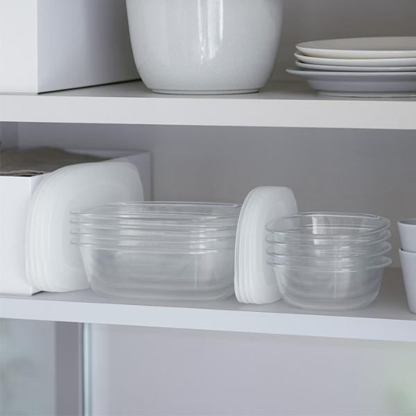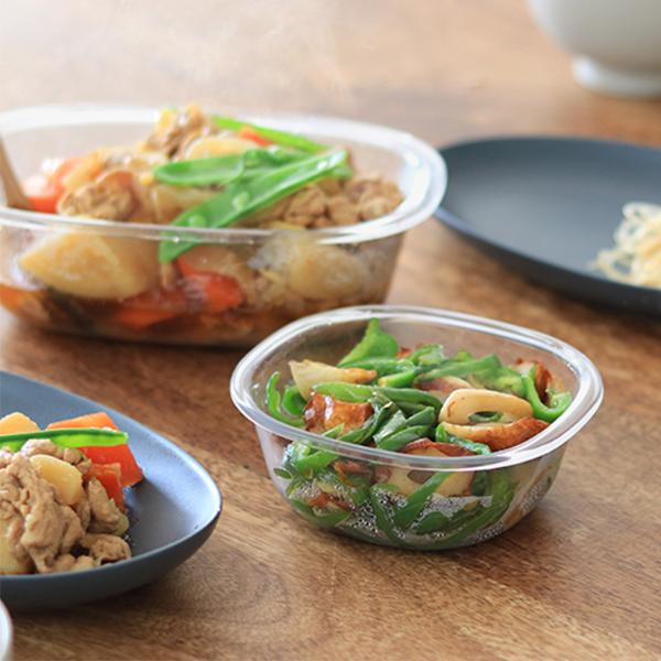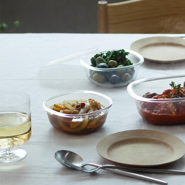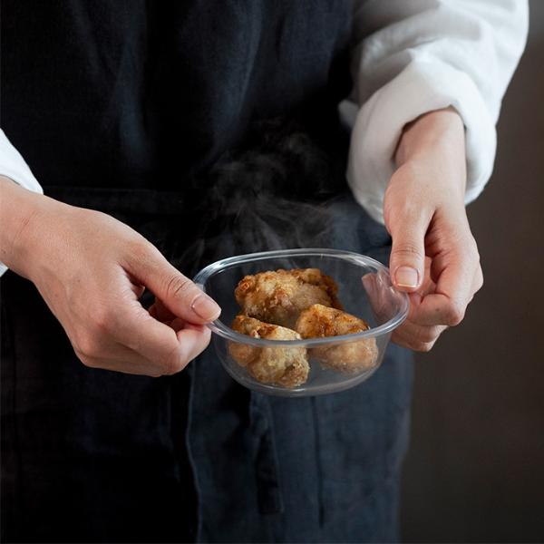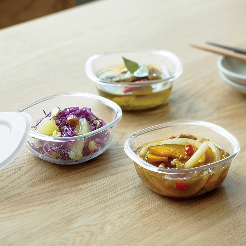 余ったおかずや作り置きの保存に便利な蓋付き容器。一見ガラスのような透明感ですが、実はこちらはTPX樹脂製。本体も蓋もレンチンできて、さらにそのまま食器としても映える、まさに「うつわにもなる保存容器」です。