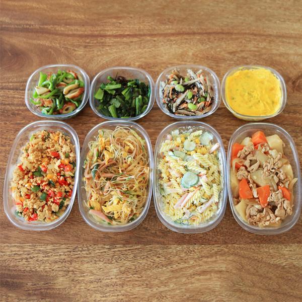 冷蔵庫に入れておいた作り置きをレンジで温め、そのままパパッと食卓に並べるだけ。忙しい日も手抜き感のない食卓が完成します。
