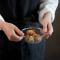 フタの中央には凹みがあり、同じ容器で重ねやすい仕様に。作り置きおかずの小分け保存もすっきり美しく整います。