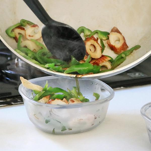 こちらはきんぴらやひじきの煮物など、副菜の保存にちょうどいい250mlサイズ。2個セットなので、1日分ずつ小分けしたい時にも便利で、冷蔵庫内で重ねてもすっきり整います。