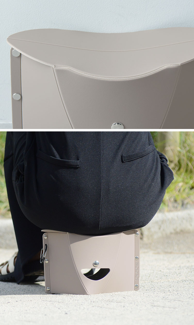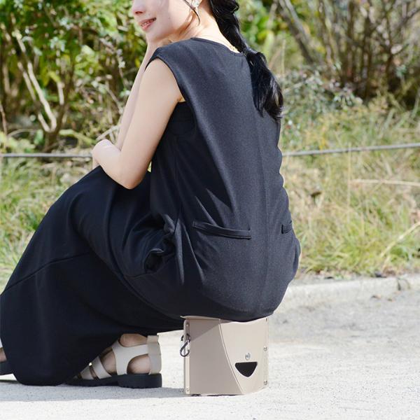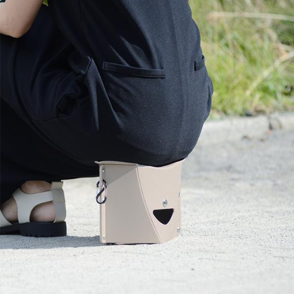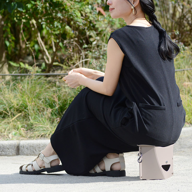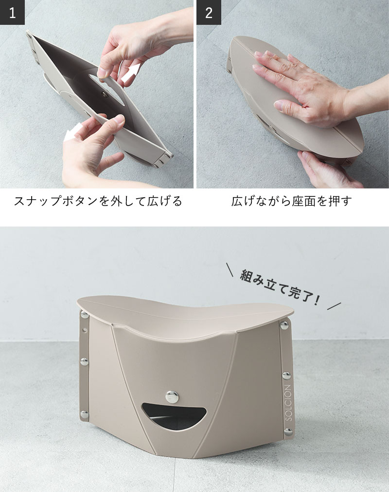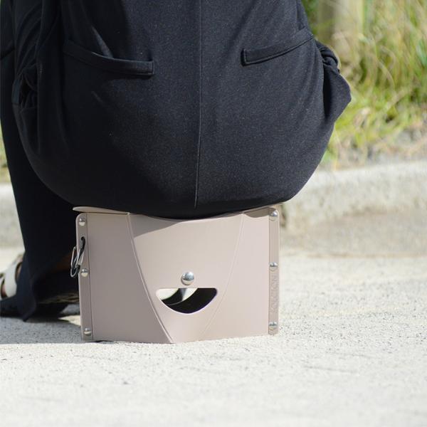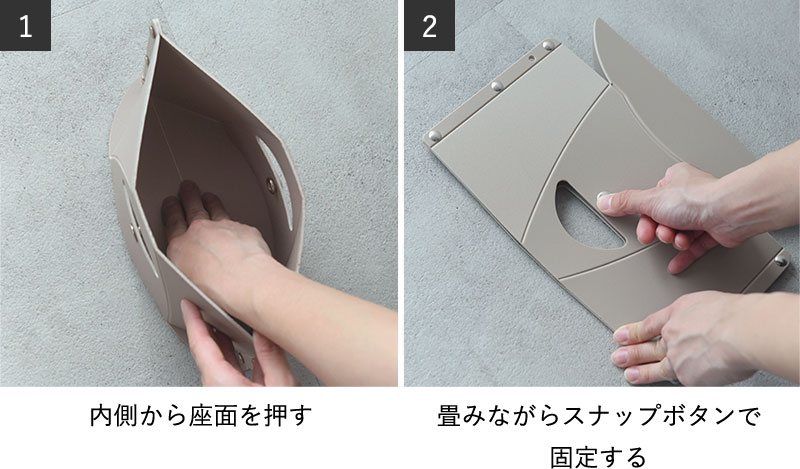 ファイルのような形から、開いて押すだけ。約3秒で簡易イスの完成です。