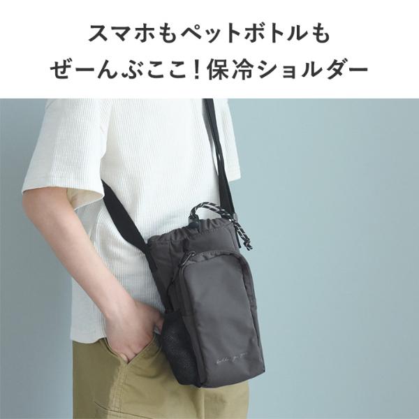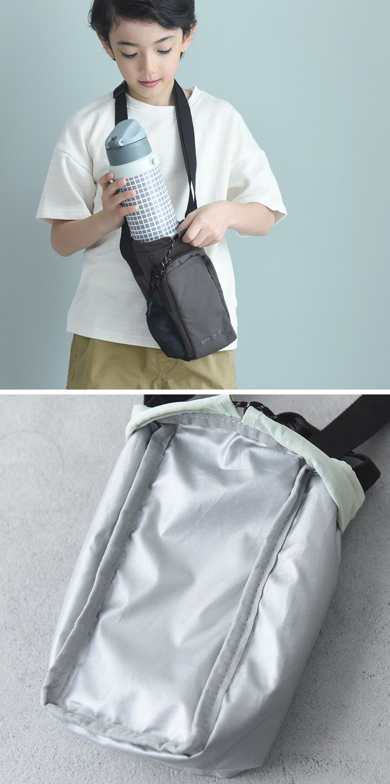 ペットボトル、スマホ、ICカードをまるっと入れられる、保冷ショルダー。内側は保冷素材になっているので、暑い季節の持ち歩きも◎。低学年から高学年まで使いやすいデザインです。
