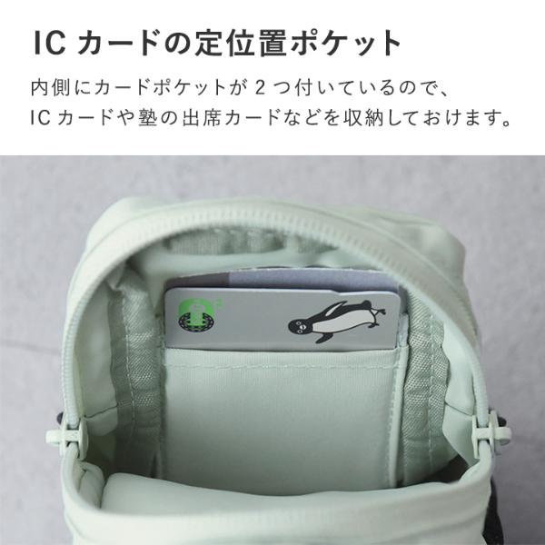 内側にカードポケットが2つ付いているので、ICカードや塾の出席カードなどを収納しておけます。