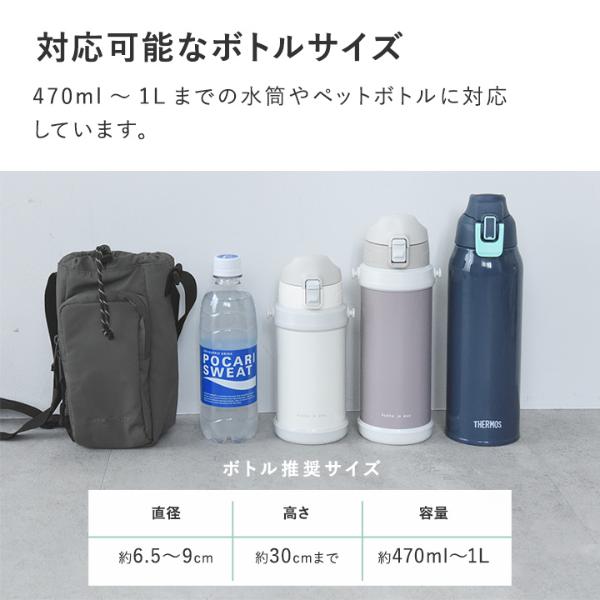 470ml~1Lまでの水筒やペットボトルに対応しています。
