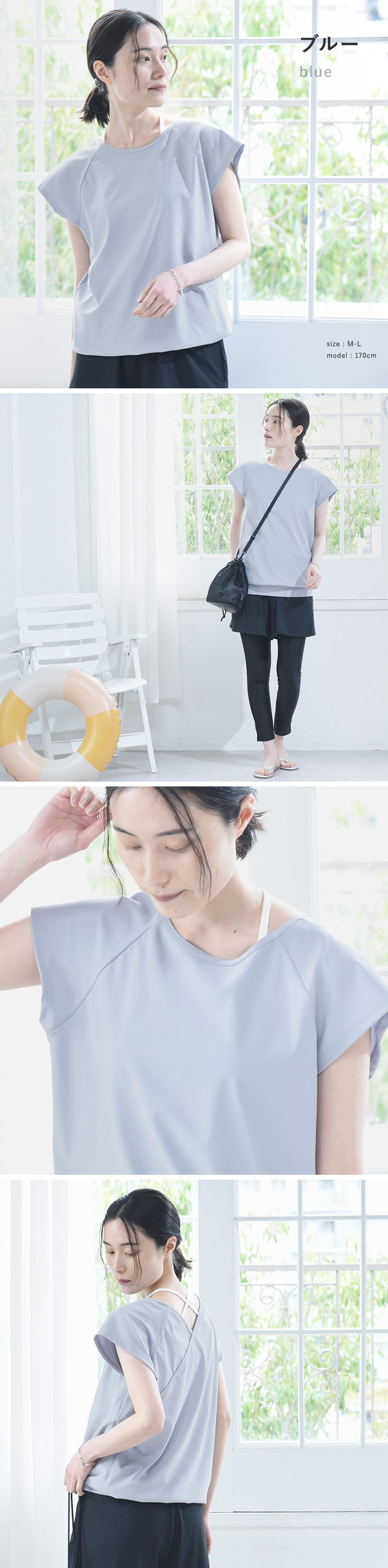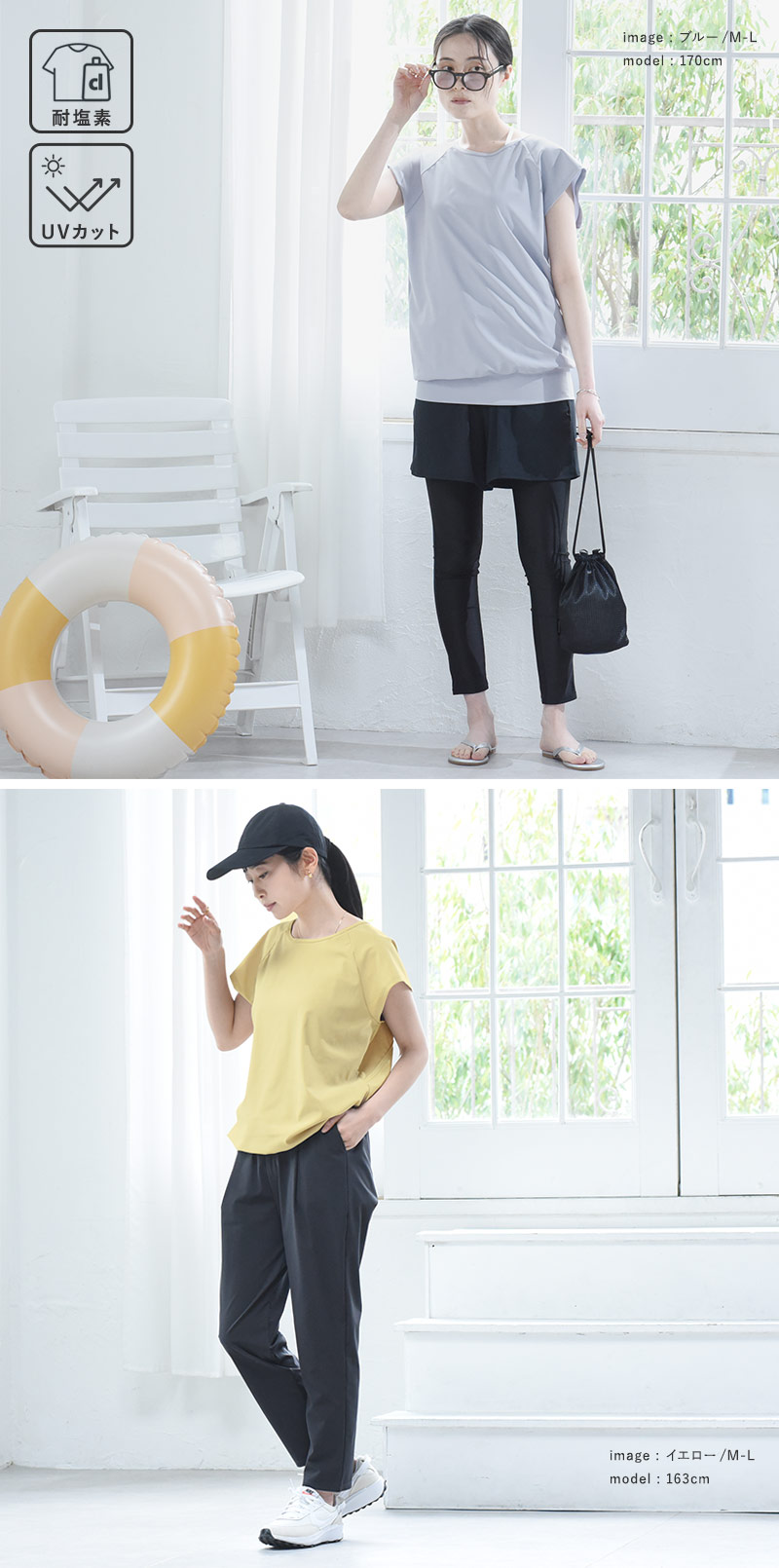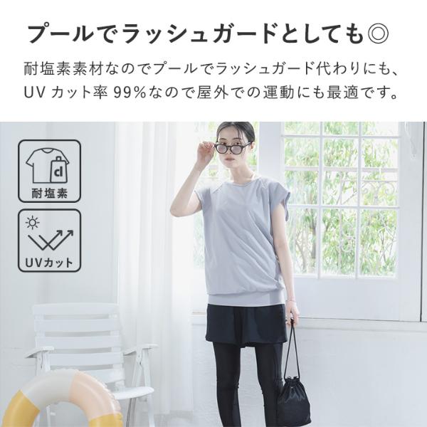 また、耐塩素素材なのでプールでラッシュガード代わりにも、UVカット率99%なので屋外での運動にも最適です。