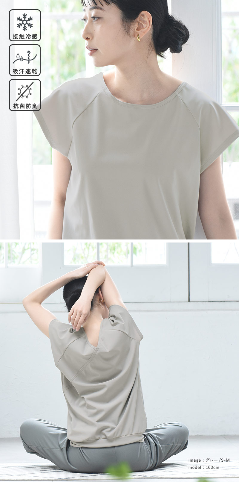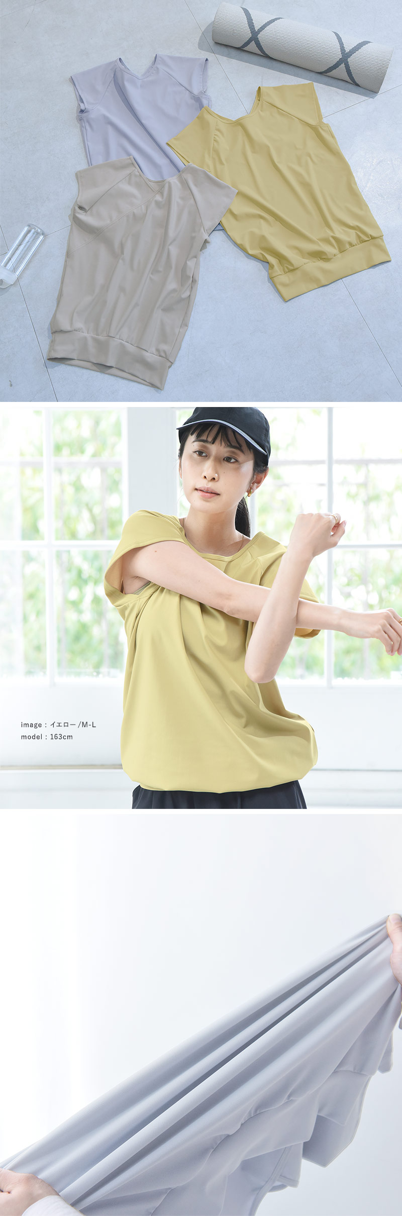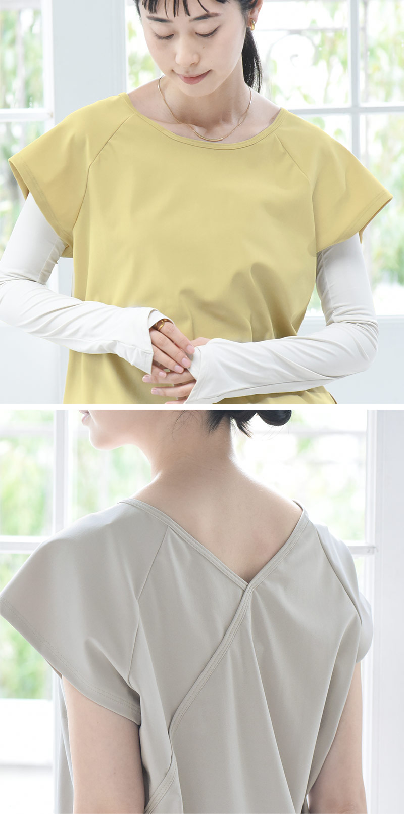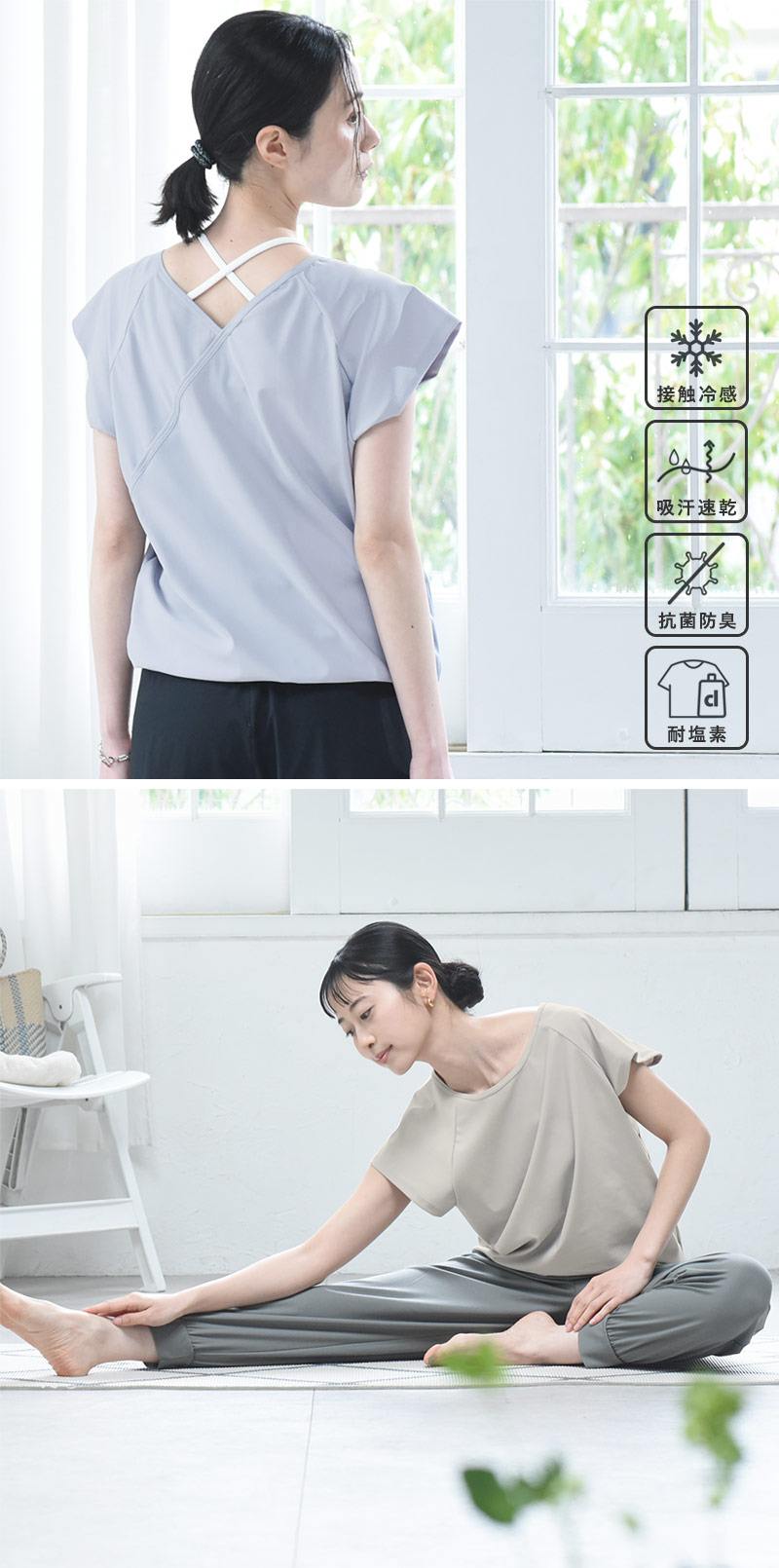 ヨガやジム、宅トレなどで活躍する、バッククロスのプルオーバー。吸汗速乾、接触冷感、UVカットなどアクティブシーンにうれしい機能を備えています。