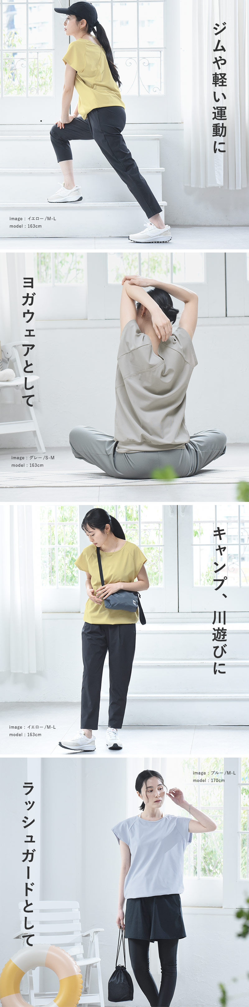 ジムやヨガ、レジャーイベントなどのアクティブシーンで活躍してくれる機能派Tシャツ。ドライタッチな風合いで、肌触りもさらっと涼やか。