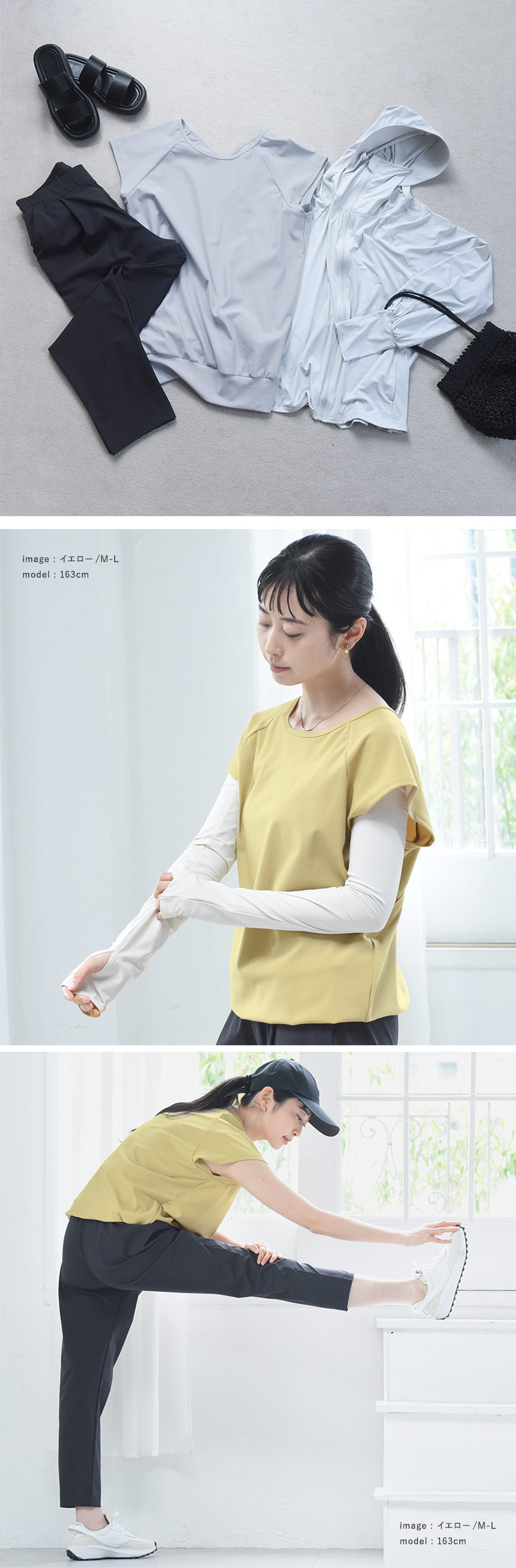 汗を吸って素早く乾かす「吸汗速乾」、ひんやり心地良い「接触冷感」など、暑い時期の運動時にうれしい機能つき。