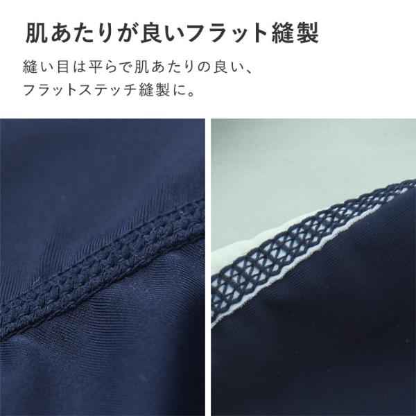 縫い目は平らで肌あたりの良い、フラットステッチ縫製に。