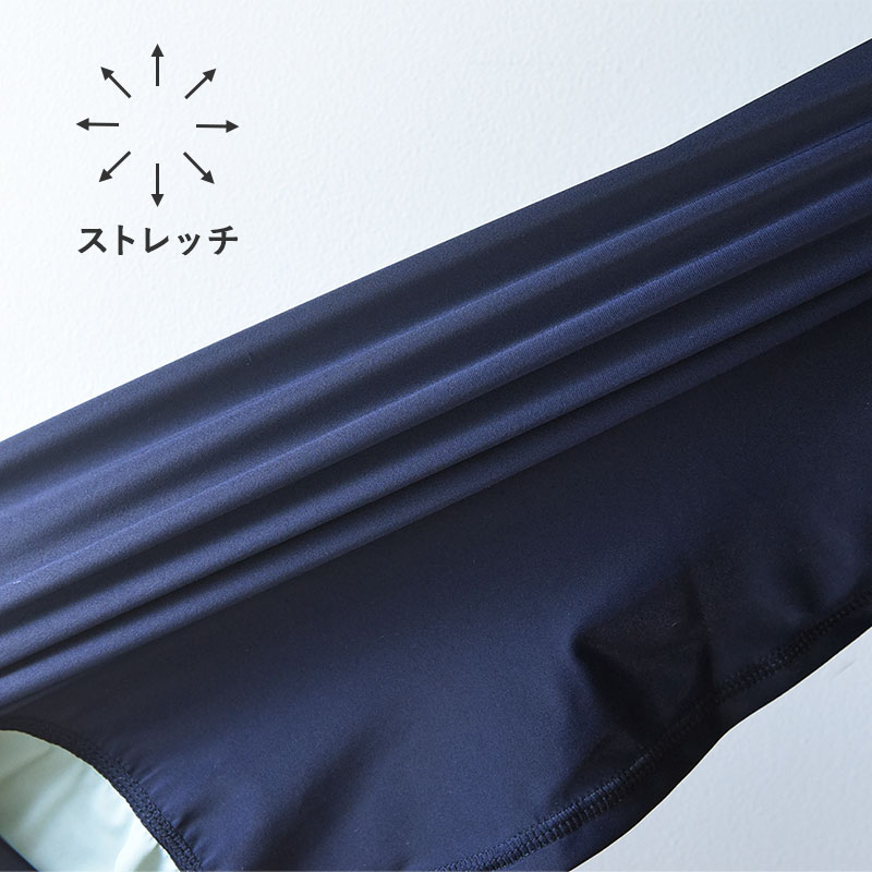 タテヨコだけでなく、斜めにも伸びるストレッチ素材は伸縮性が高く、体の動きを妨げない快適な着心地です。