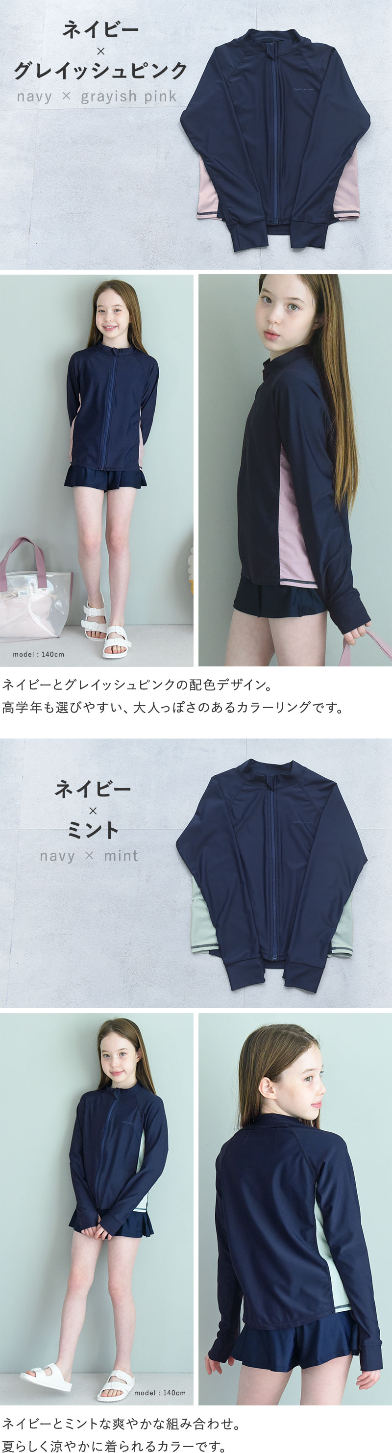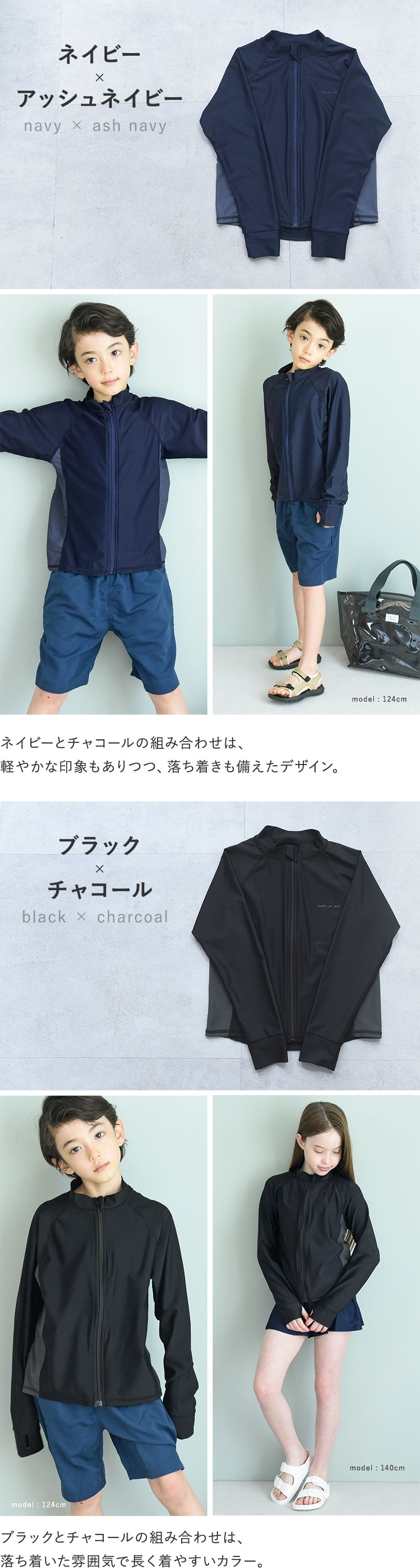 インスタグラムでどんなものを選びたいかアンケートをとってみたところ、多かったのが「一人で脱ぎ着しやすいもの」「動きやすくてピッタリしすぎないもの」というお声。そんなご意見を取り入れながら完成したのが、こちらのラッシュガードです。
