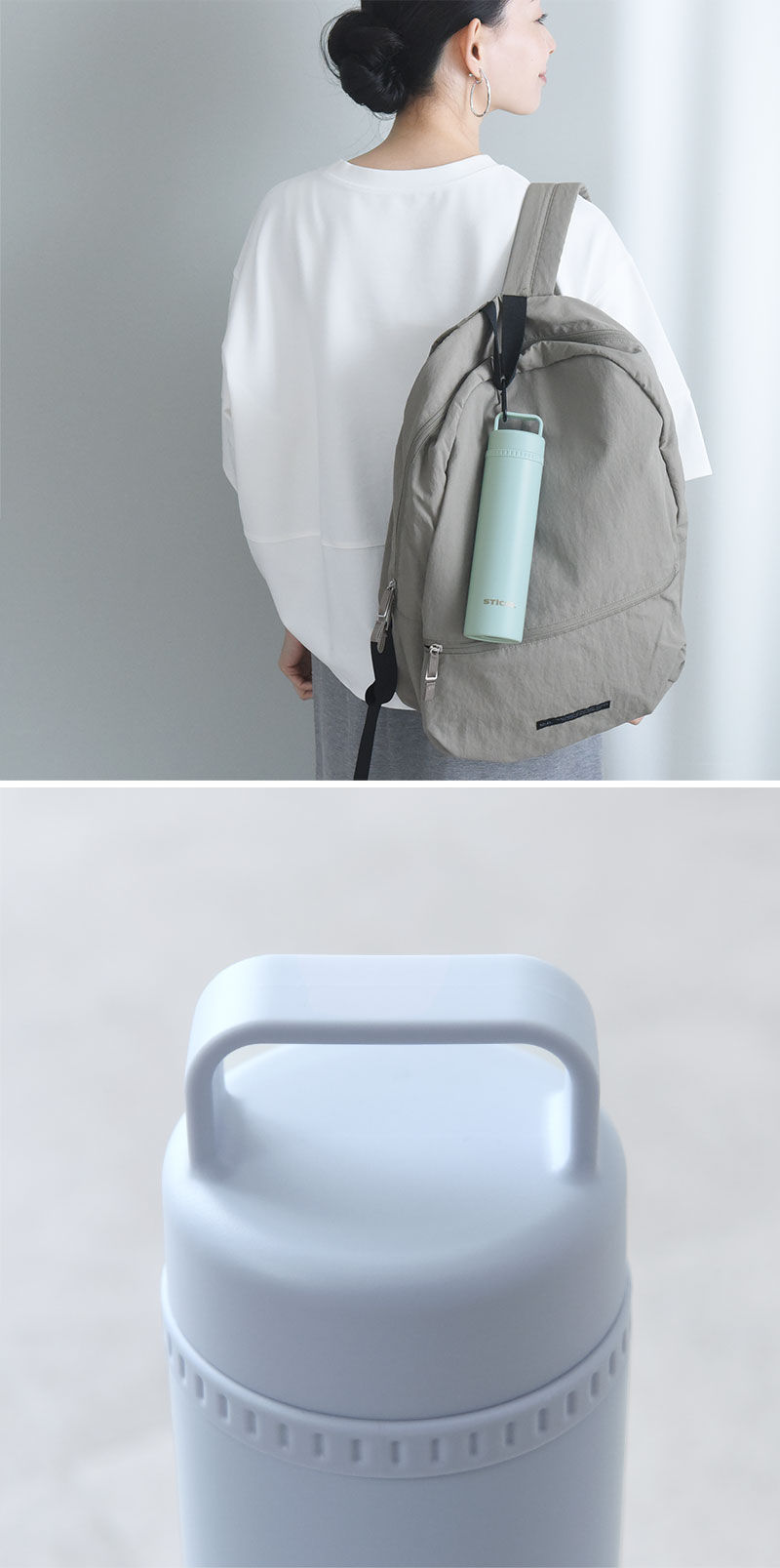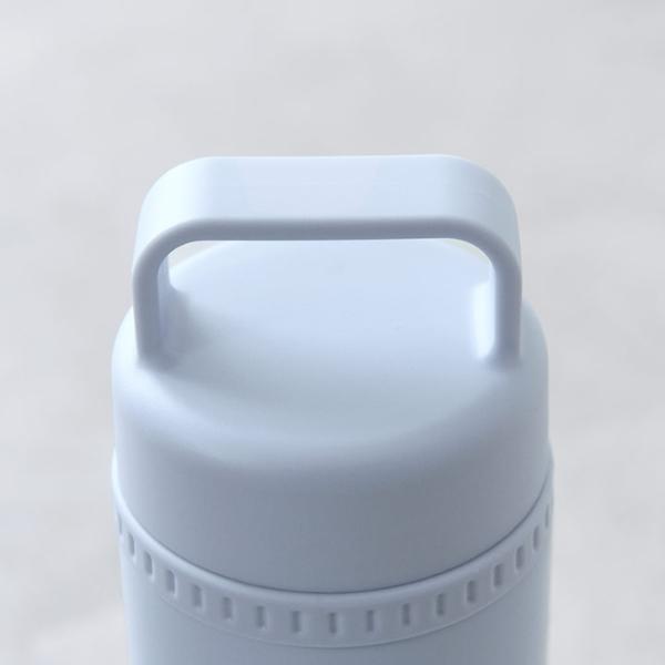 キャップ部分は持ち手付きで、子どもから年配の方まで開けやすいのもポイント。小さな手でも握りやすく、またお手持ちのカラビナを使ってリュックにぶら下げることもできます。