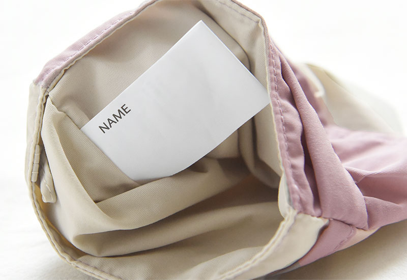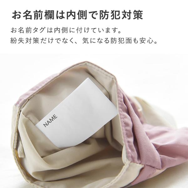 お名前欄は内側で防犯対策知らない人に名前を見られないように、お名前タグは内側に付けています。紛失対策だけでなく、気になる防犯面も安心。