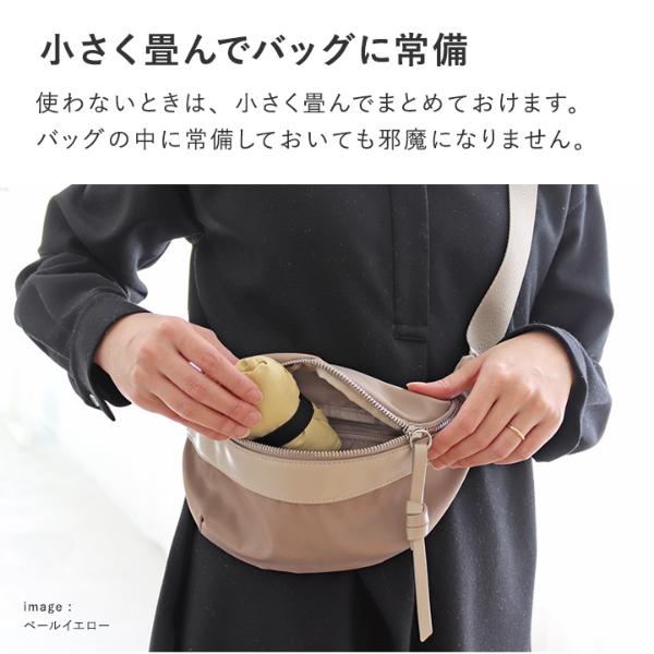 使わないときは、小さく畳んでまとめておけます。バッグの中に常備しておいても邪魔になりません。重さはわずか120g程と軽いのもポイント。
