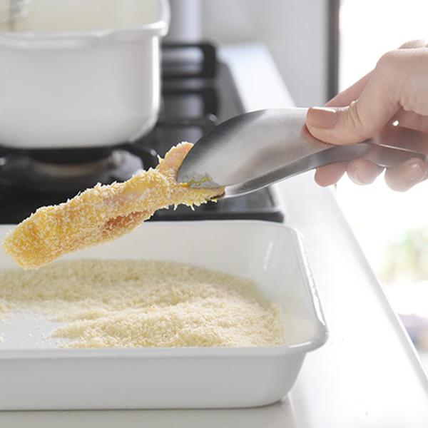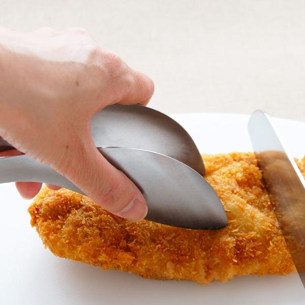 - 指で食材を掴んでるみたいな使い心地のleye(レイエ)ゆびさきトング。揚げ物の下ごしらえや、肉や魚、ニンニクなどニオイが気になる食材も、コレで掴めば衛生的に調理できます。