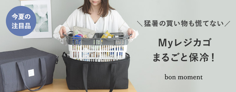 レジカゴのまま運ぶよりも、こちらのバッグに入れていた方が生鮮食品などは安心。内側保冷素材で一年中お使いいただけます。