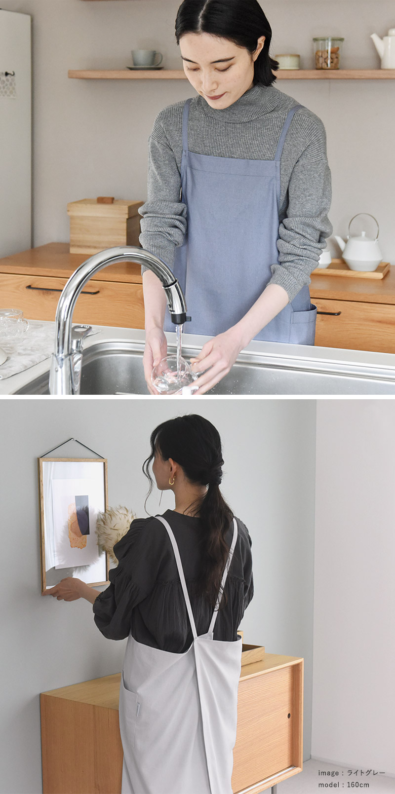 「今日は家中思い切りお掃除しよう。気合を入れて手の込んだお料理をしてみよう。」そんな風に長時間エプロンを着けるシーンでも、疲れが気になりにくいんです。