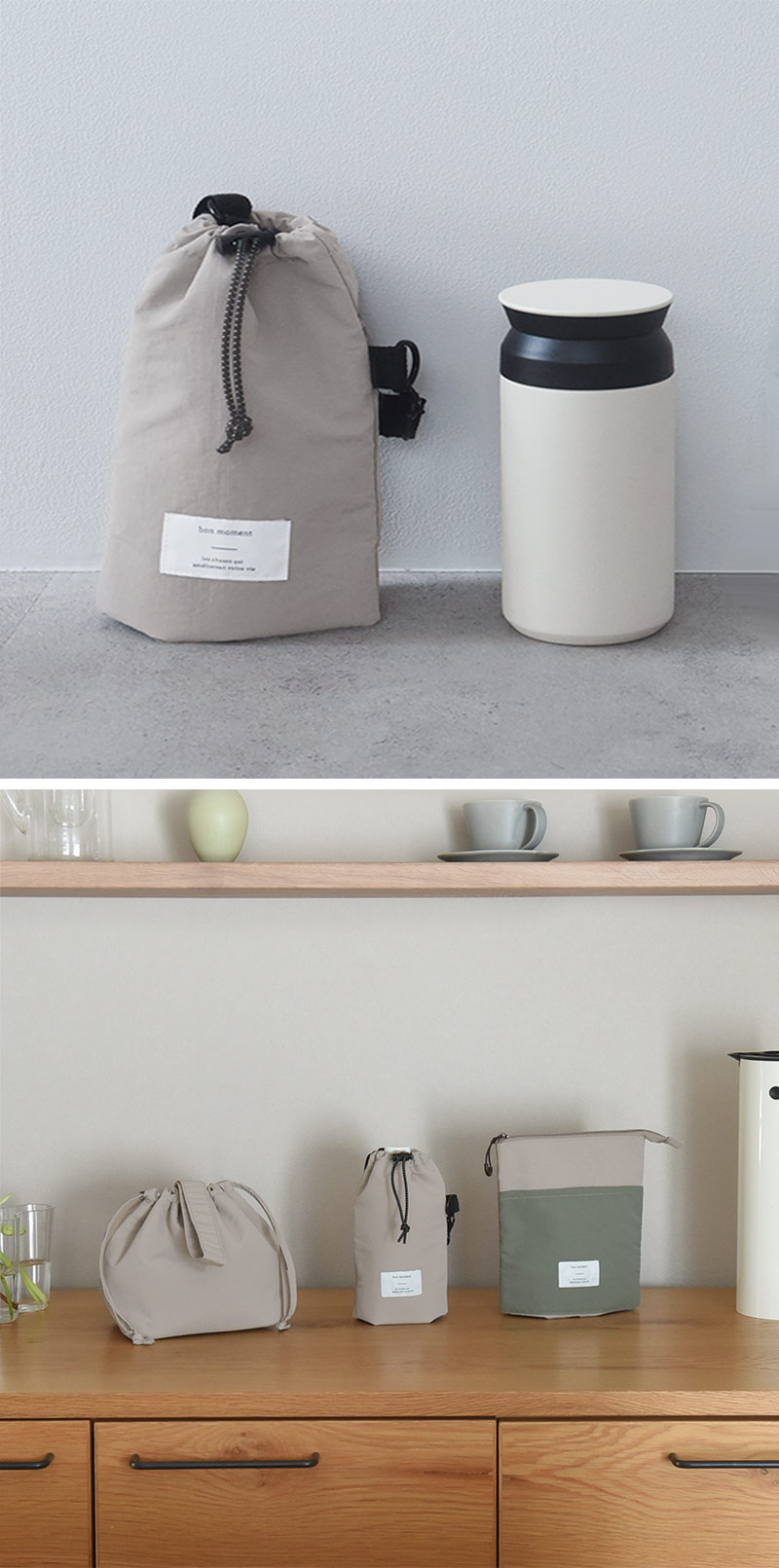 同素材の「保冷ミニポーチ」や「巾着型 保冷ランチバッグ」とシリーズでお使いいただくのも◎です。