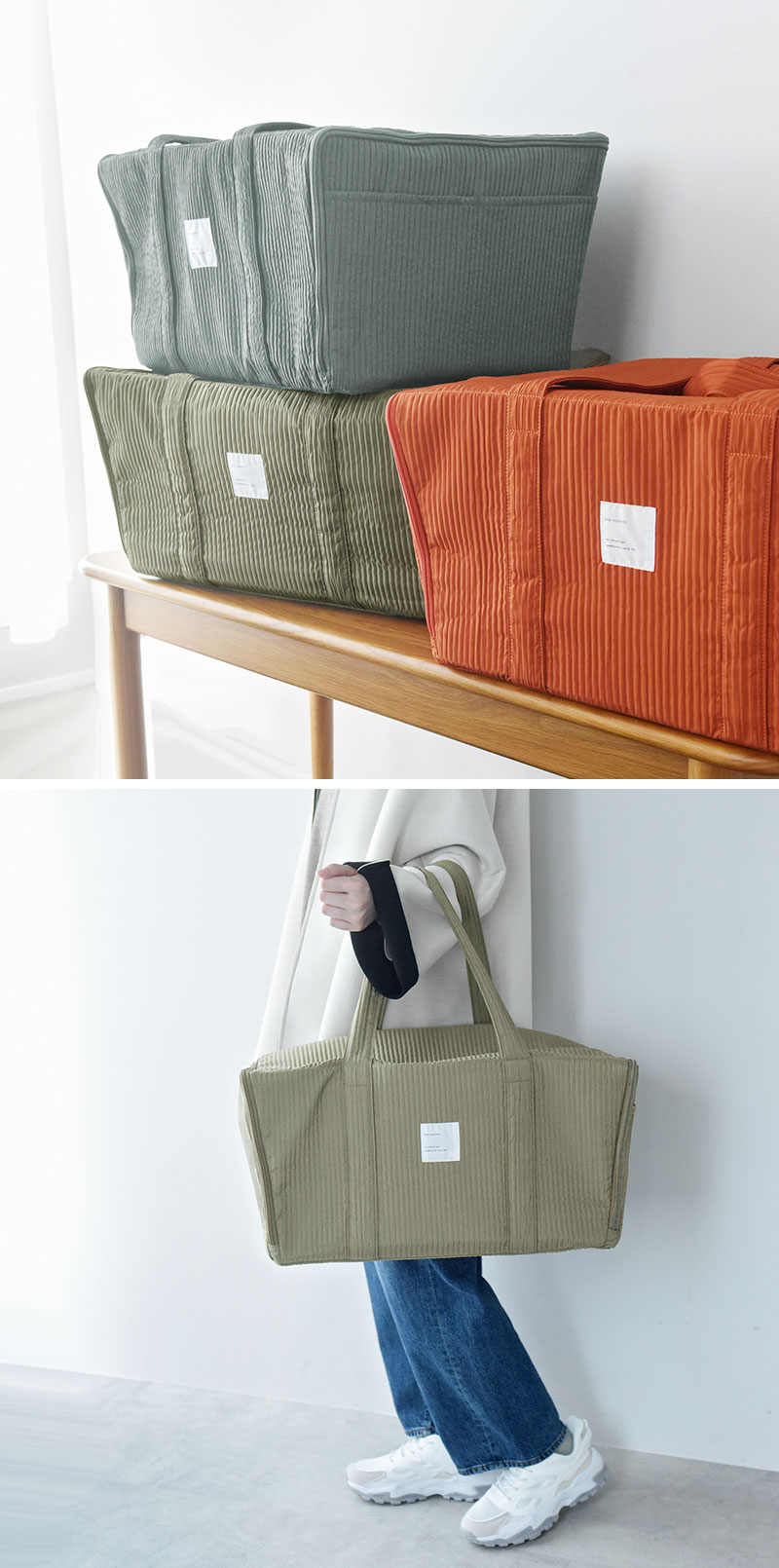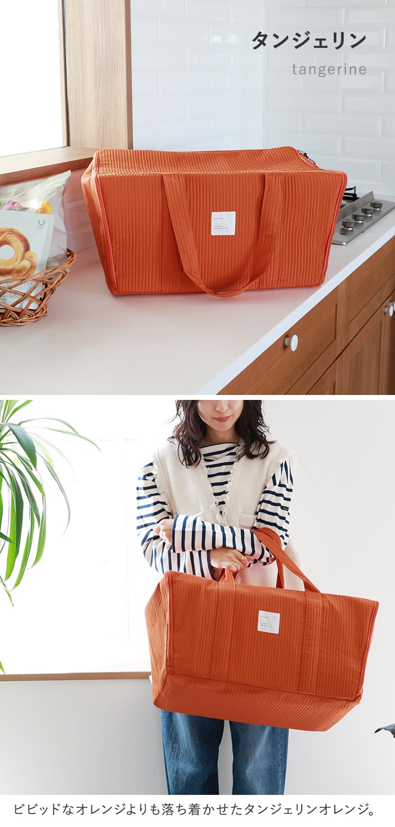 大きなエコバッグとしても内側全体が保冷素材なので、そのまま食品を入れたり、小分けのエコバッグをまとめて入れる使い方も◎。