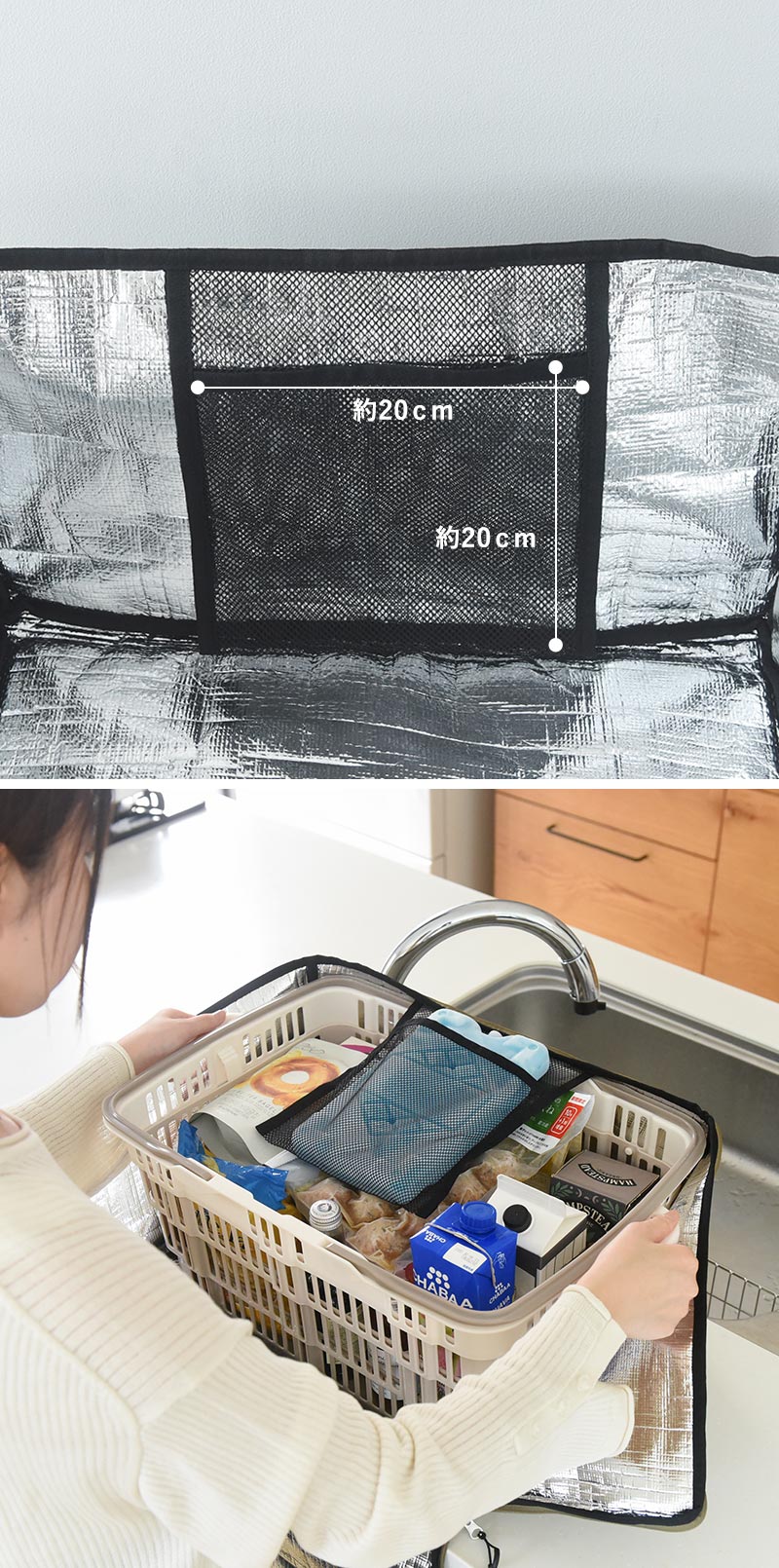 保冷剤ポケットをカゴの真上に持ってくれば、カゴの中身を均一に冷やすことができます。
