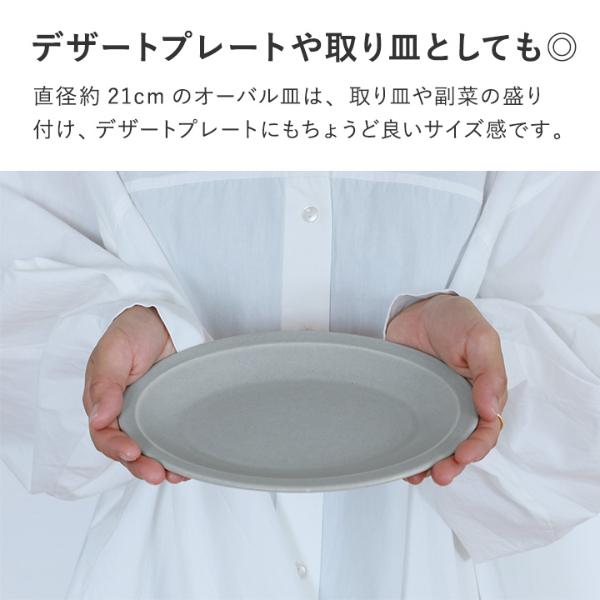 直径約21cmのオーバル皿は、取り皿や副菜の盛り付け、デザートプレートにもちょうど良いサイズ感です。