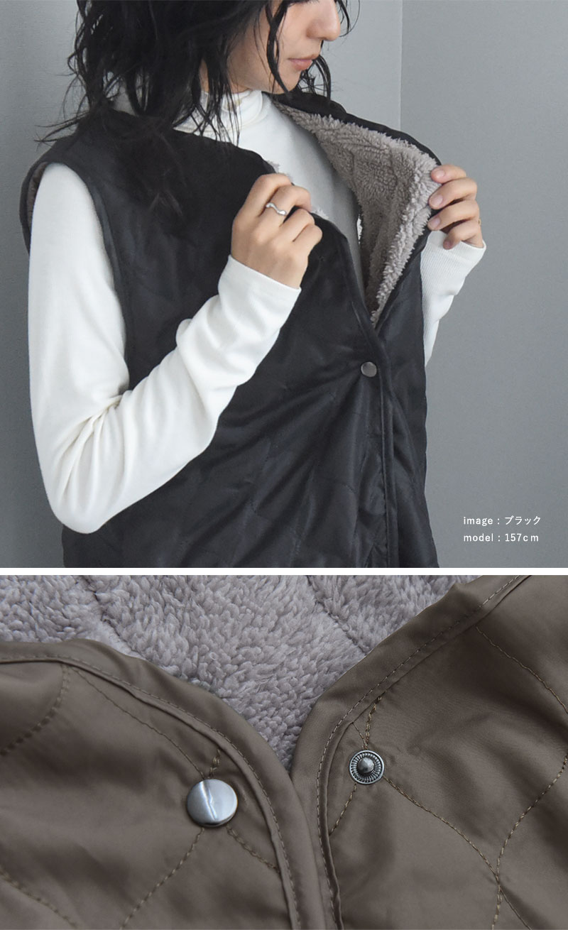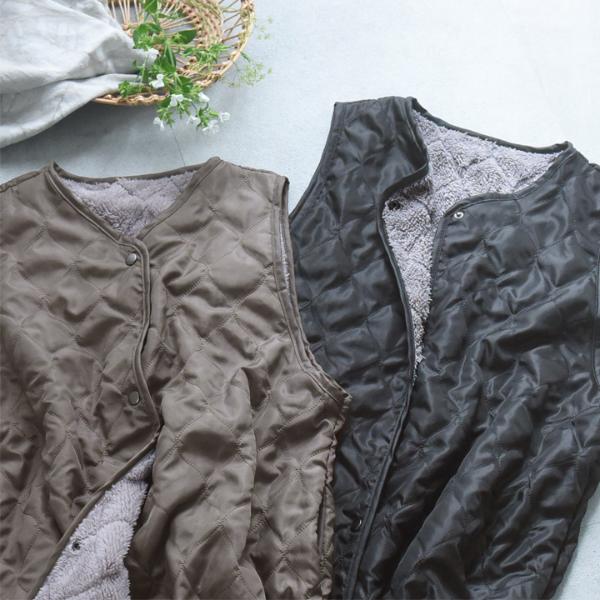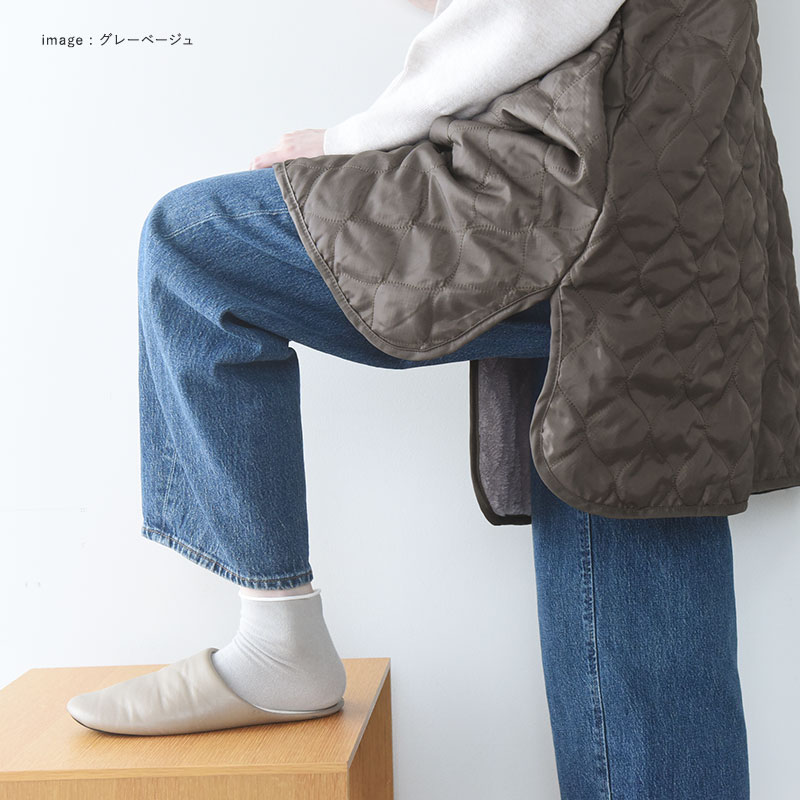 中綿入りのキルティング仕様で、裏側にはボアがついているので肌寒い季節にぴったり、ふんわり優しいぬくもりに包まれます。