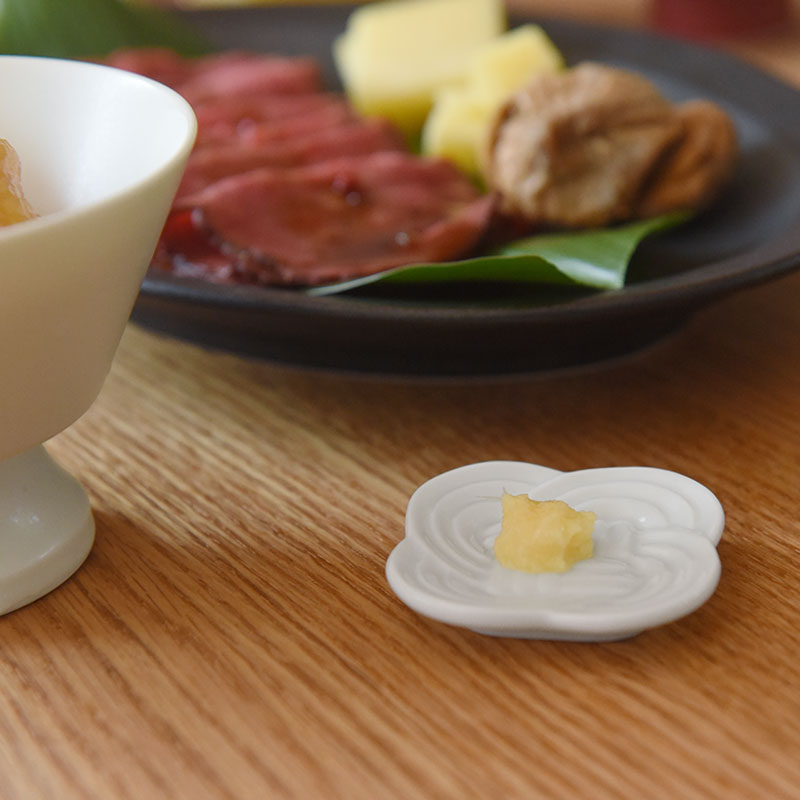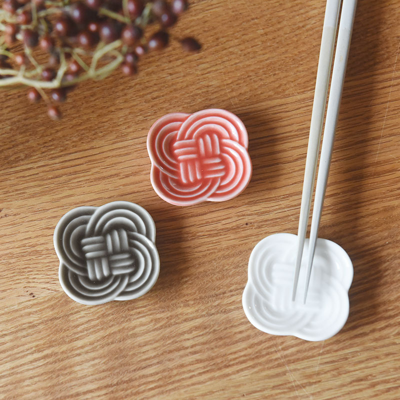 - 縁起の良い「組みひも」をモチーフにした「結 箸置き」。幸せが長く続くようにと願う心を宿したような、ハレの日の食卓にぴったりなひと品です。薬味皿としても。