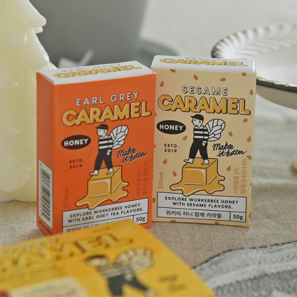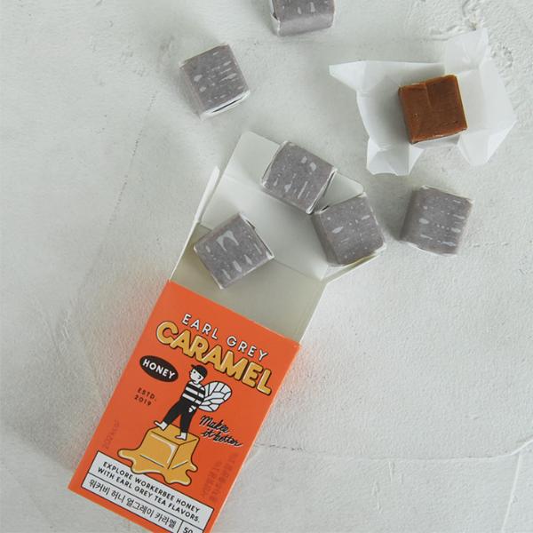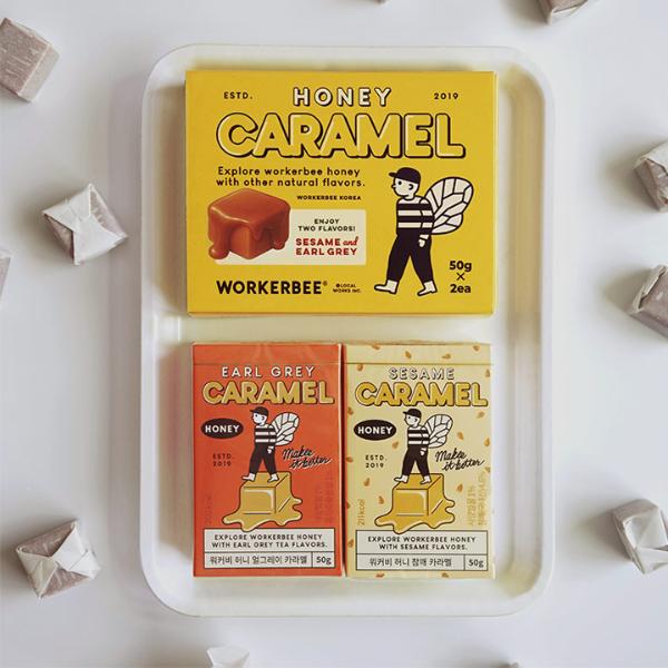 韓国生まれのハチミツ専門ブランド「WORKERBEE(ワーカビー)」のキャラメルボックスは、バッグに忍ばせておくプチおやつに◎。お仕事中にデスクに置いておいても気分が上がるパッケージデザインです。
