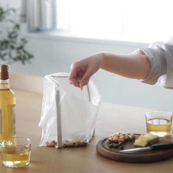 ゴミ袋だけでなく調理用の袋をかけて使ったり、キャンプやアウトドアでのゴミ捨てにも活躍します。