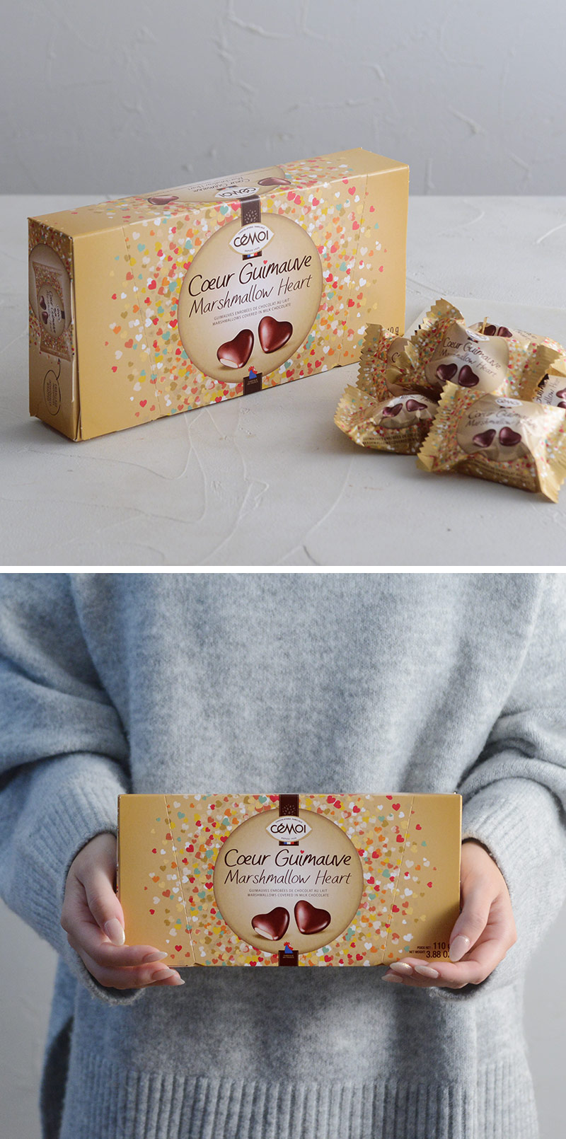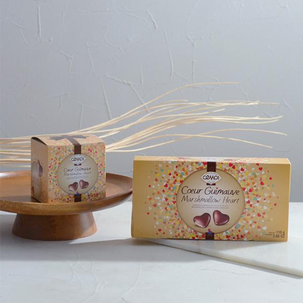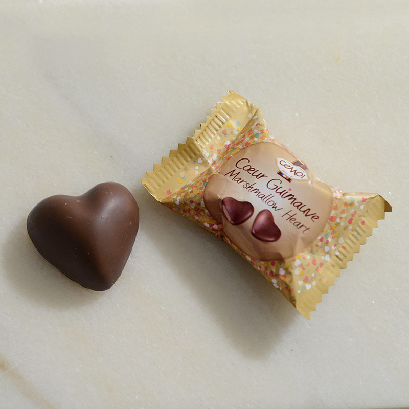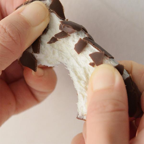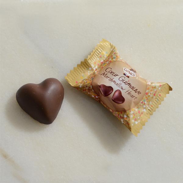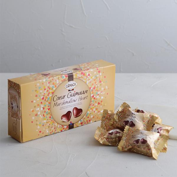 - フランスで200年以上も受け継がれる伝統のレシピをもとに作られたマシュマロチョコ。もっちりとしたマシュマロを、ほどよい甘さのミルクチョコレートで薄く包み込んでいます。