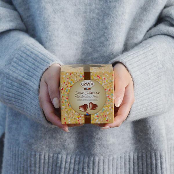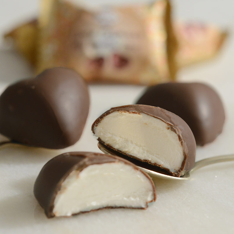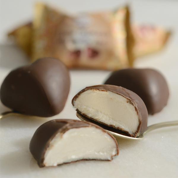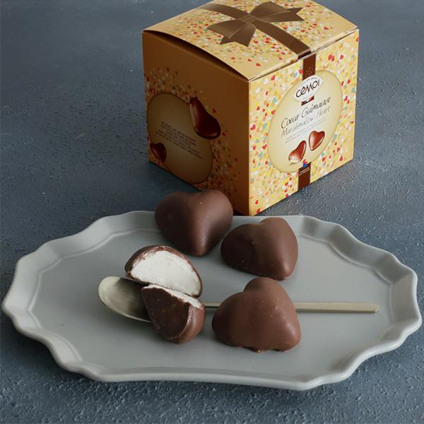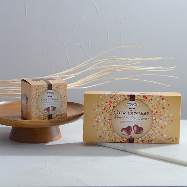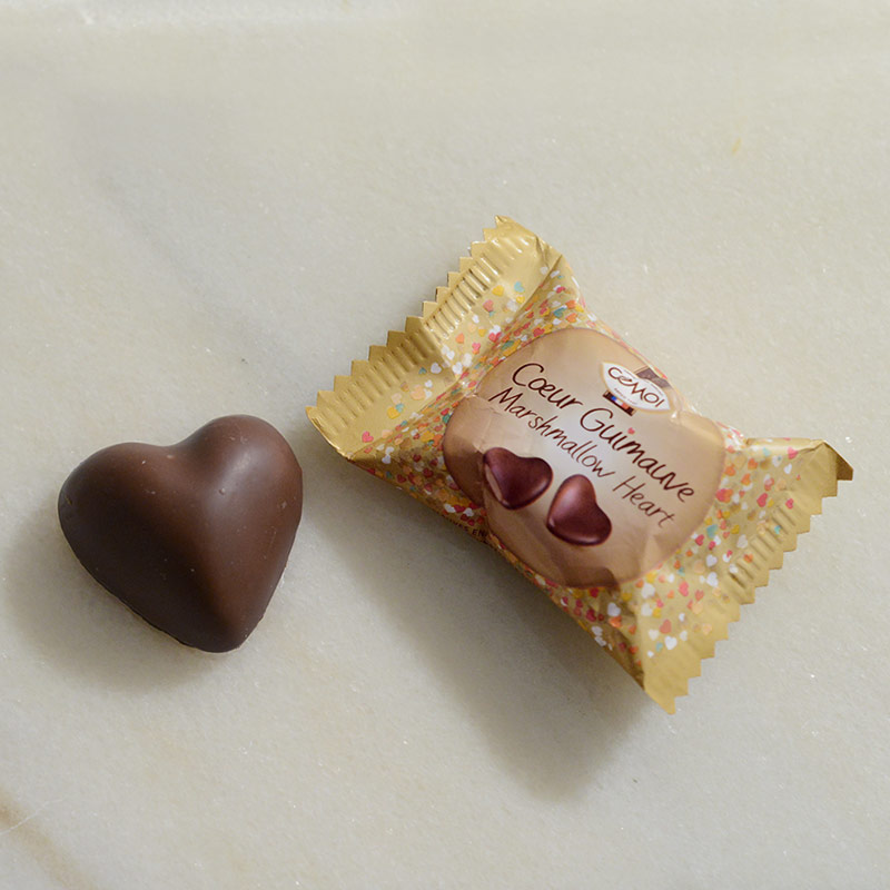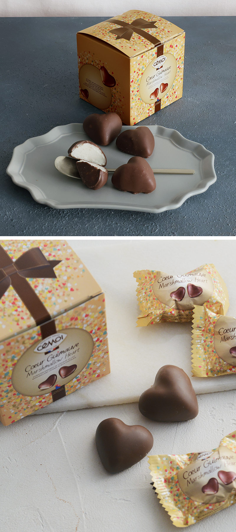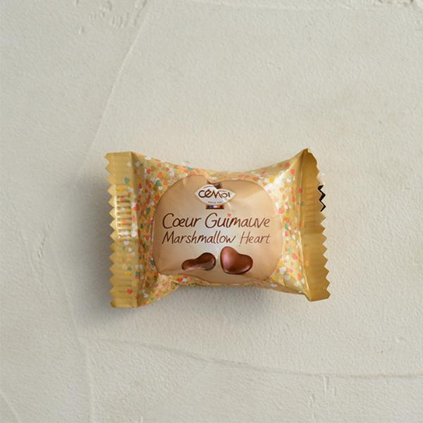 - フランスで200年以上も受け継がれる伝統のレシピをもとに作られたマシュマロチョコ。もっちりとしたマシュマロを、ほどよい甘さのミルクチョコレートで薄く包み込んでいます。
