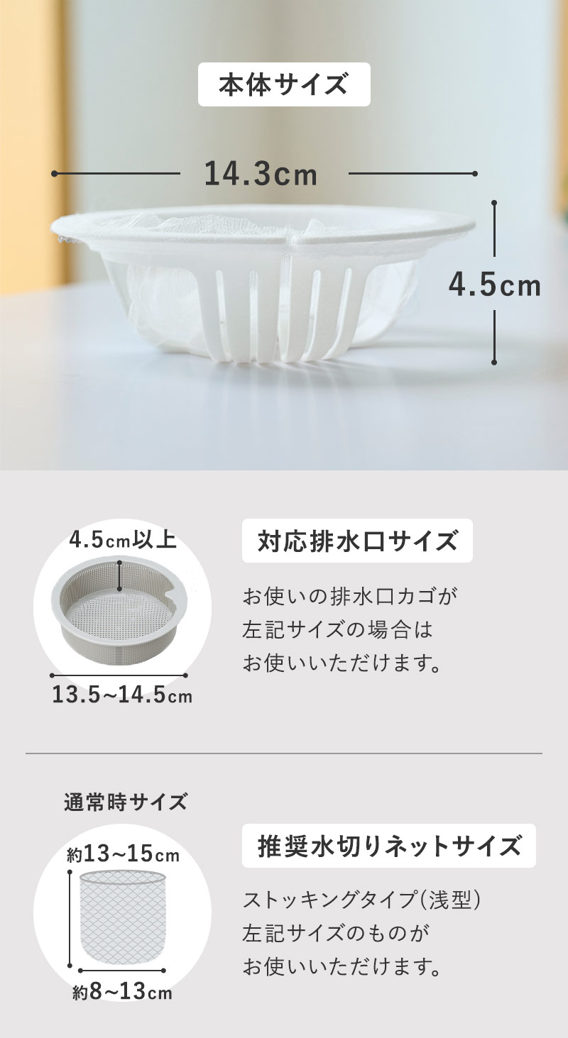 推奨水切りネットサイズ:ストッキングタイプ(浅型)縦13~15×横8~13cm