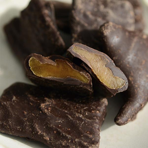 マンゴー/ダーク甘くてジューシーなドライマンゴーをカカオ60%のダークチョコで包み込んだ一品。バー状で食べやすく、濃厚な味わいです。