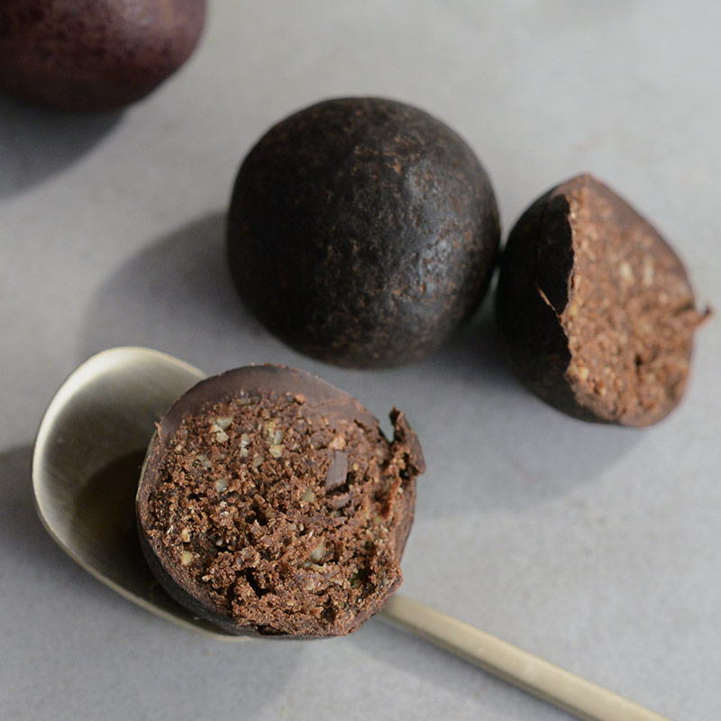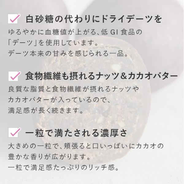 原材料名:トリプルダークチョコブラウニー/デーツ、チョコレート、ひまわりの種、ココアパウダー、ココナッツオイル、ココナッツ、かぼちゃの種、食塩/香料、乳化剤