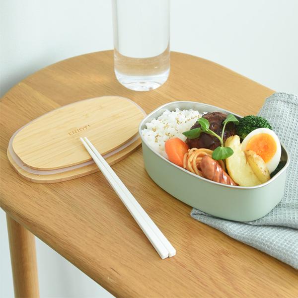表面にウレタン塗装を施されていることで、食材の汚れも落としやすく。開けるたびに「ENJOY!」の文字が目に入り、ランチタイムがちょっと特別な時間になりそう。