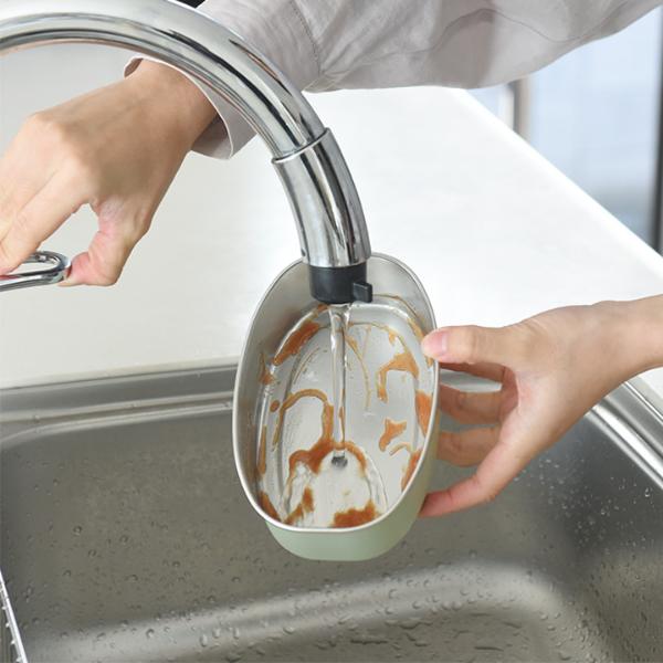 洗うのは3パーツのみ本体、蓋、パッキンの3パーツのみの作り。蓋はフラットな面が多いので洗いやすく、お弁当箱自体もオーバル型と洗いやすいかたちです。本体とパッキンは食洗機で洗えるので、お片付けも楽ちん。