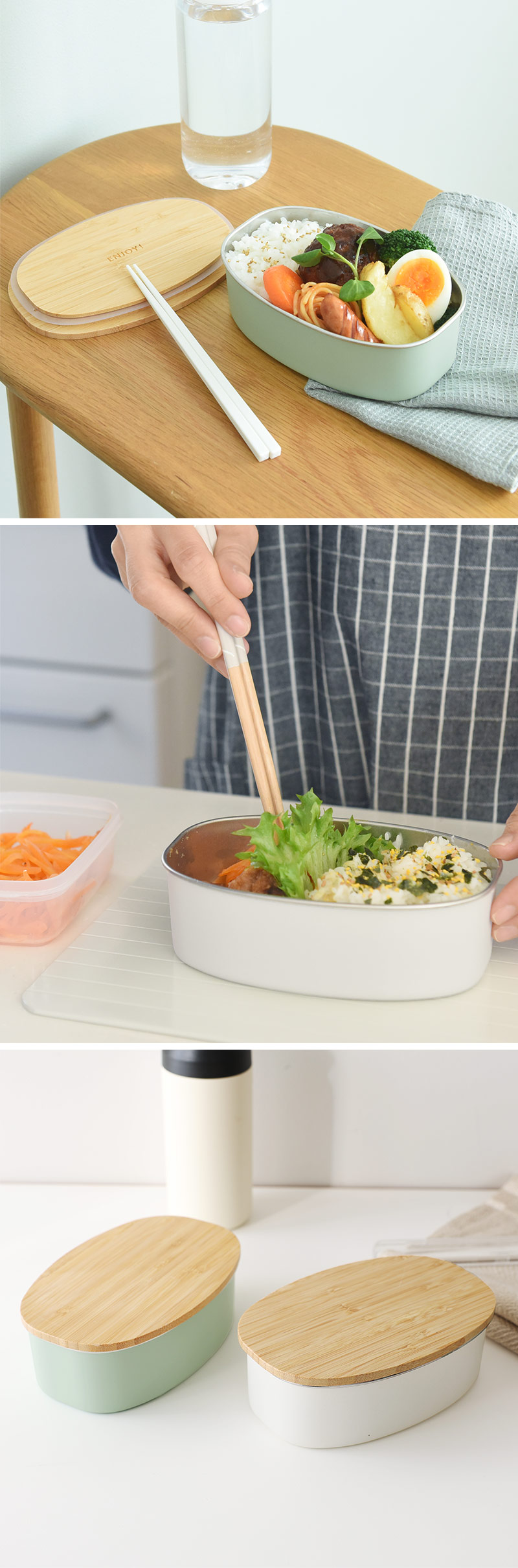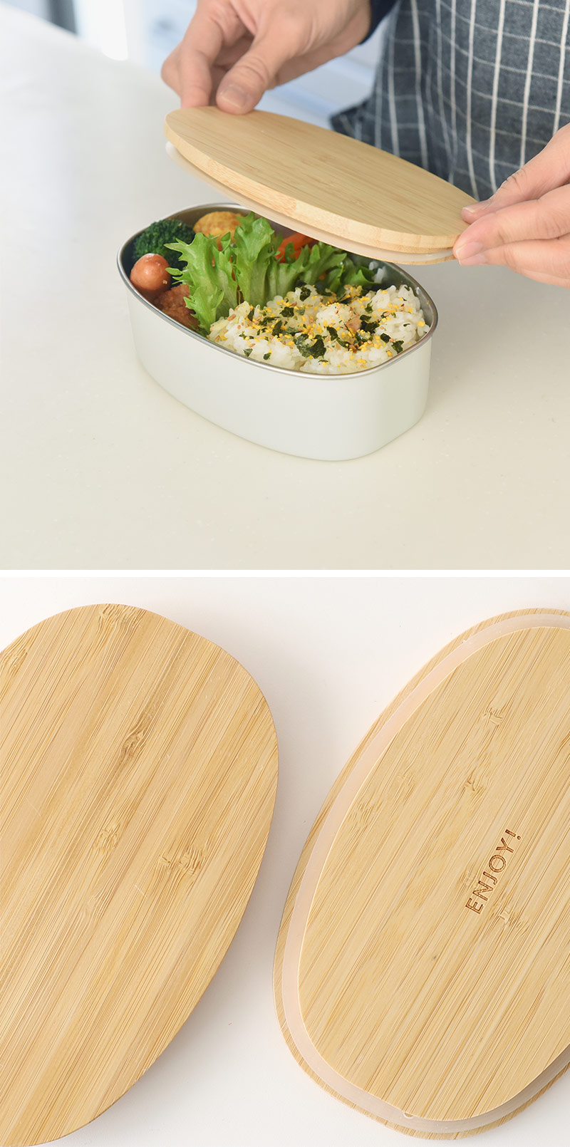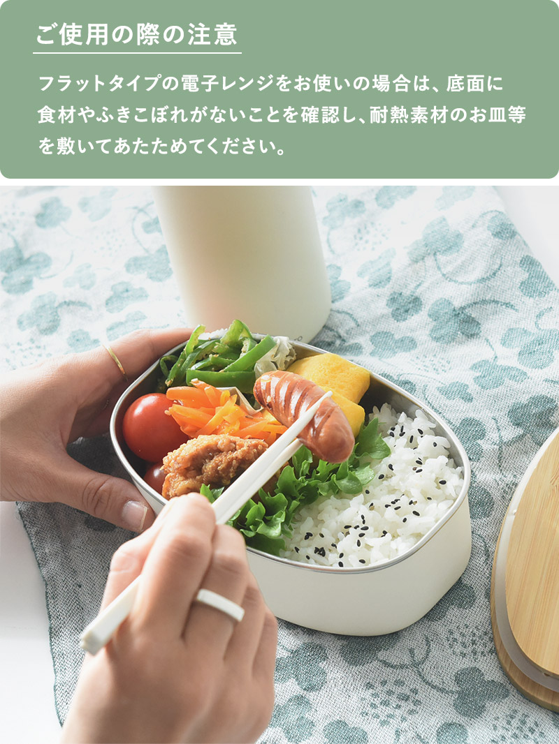 また、天然木のフタがごはんの湿気をほどよく吸収してくれて美味しさを保ってくれる役割も。使い勝手もあったかご飯も諦めたくない、そんな方にぴったりなお弁当箱です。