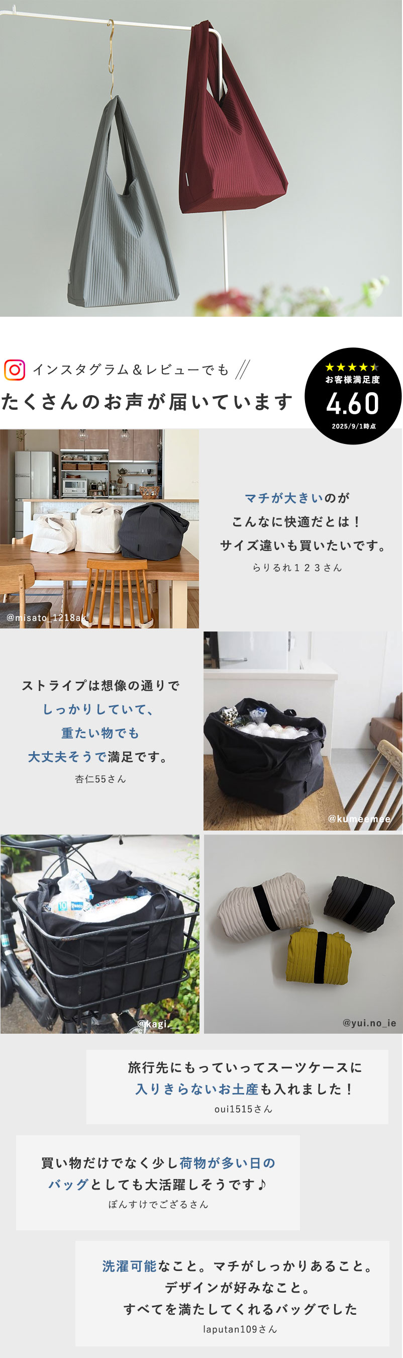 通勤や街歩きのサブバッグとしてもご好評いただいているストライプ調の素材に、秋冬新色の「オリーブグレー」と「バーガンディー」が仲間入りしました。