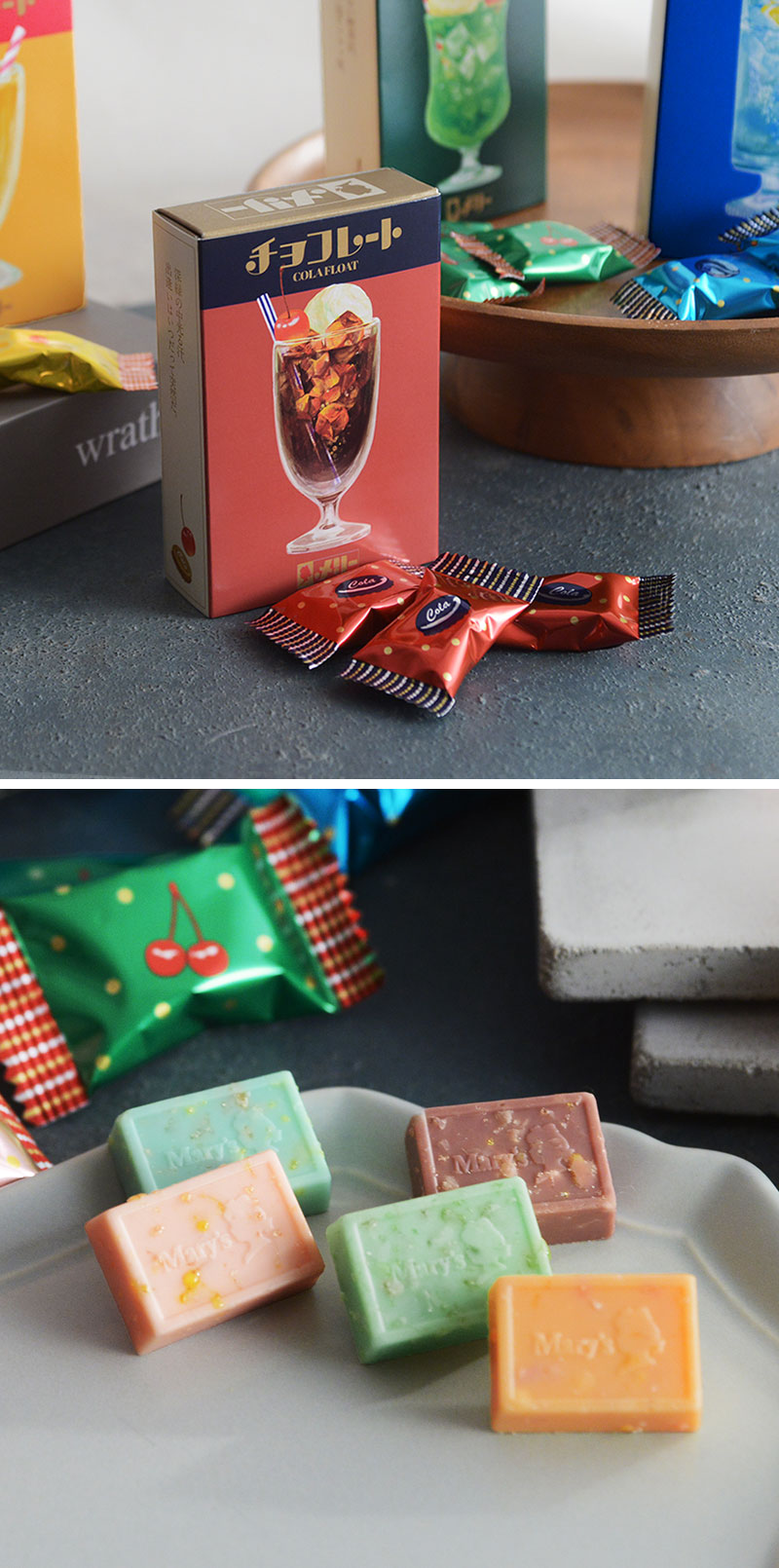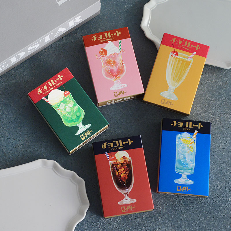 メリーチョコレートから、レトロ文具の古川紙工とコラボしたはじけるキャンディチョコレートが登場。コーラフロートなど懐かしの味をレトロな箱と共にお楽しみください。